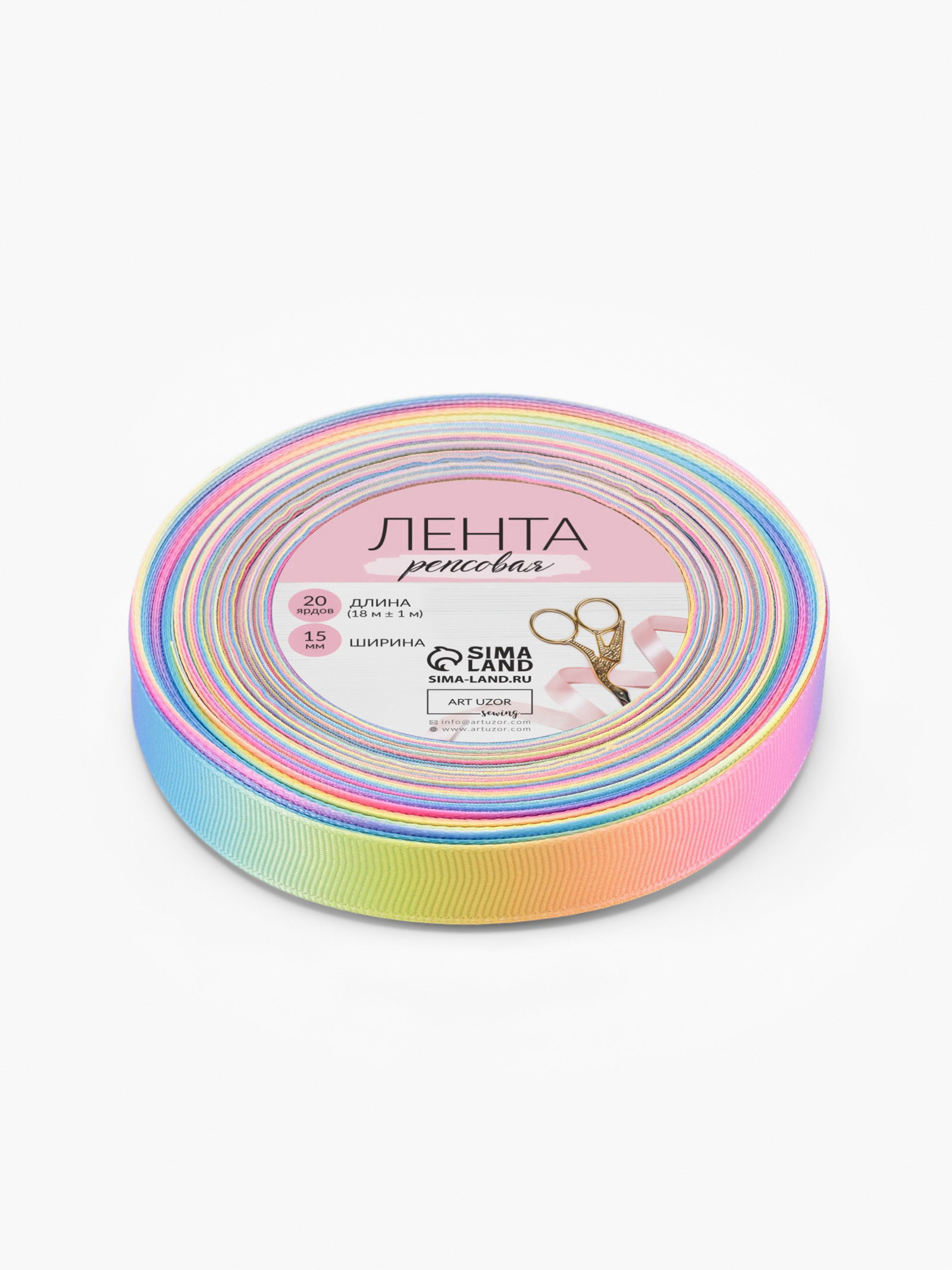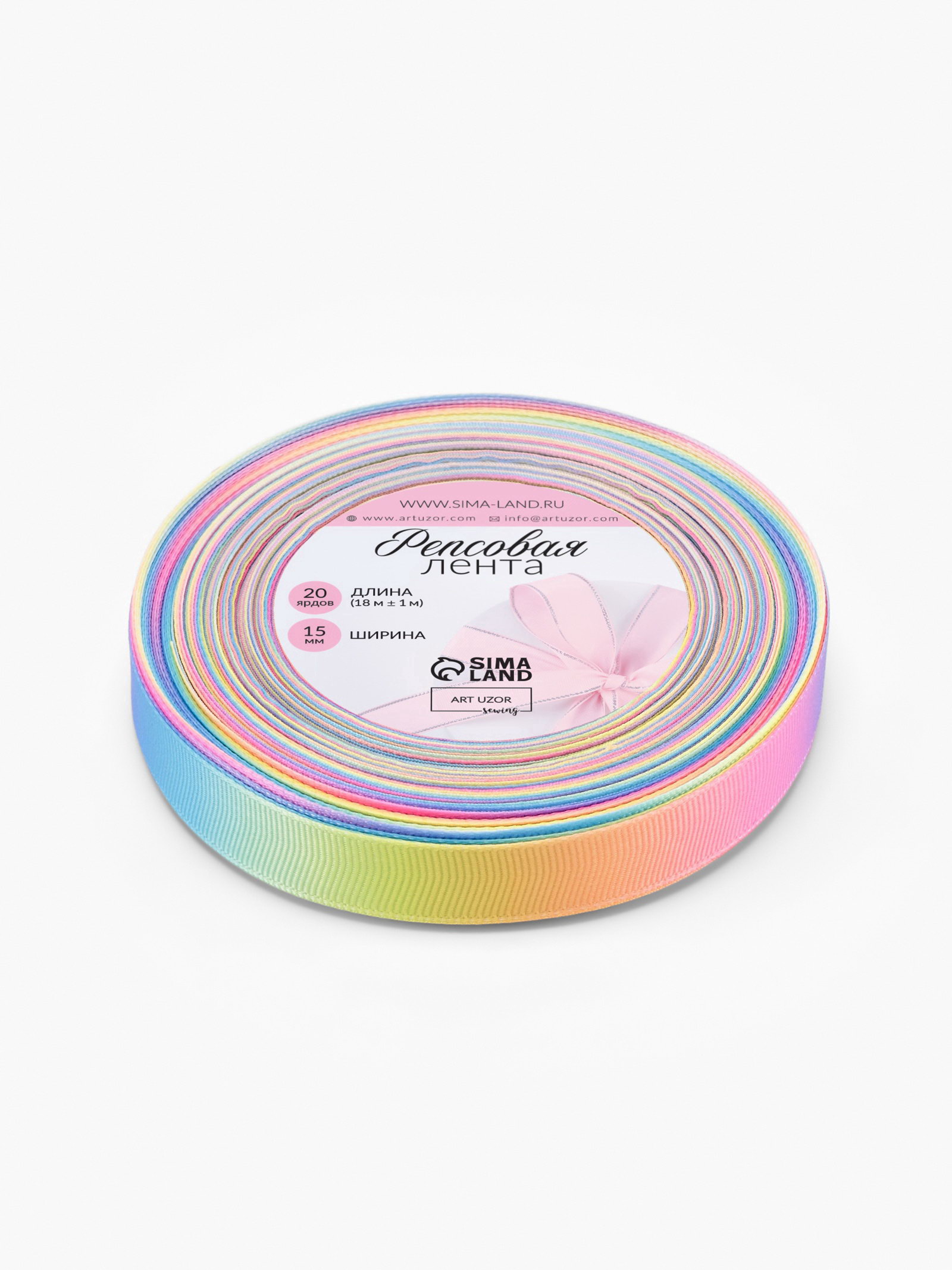 Лента репсовая "Радуга", 15 мм, 18+-1 м, разноцветная, 9x9x1.5 см., Арт Узор, Китай