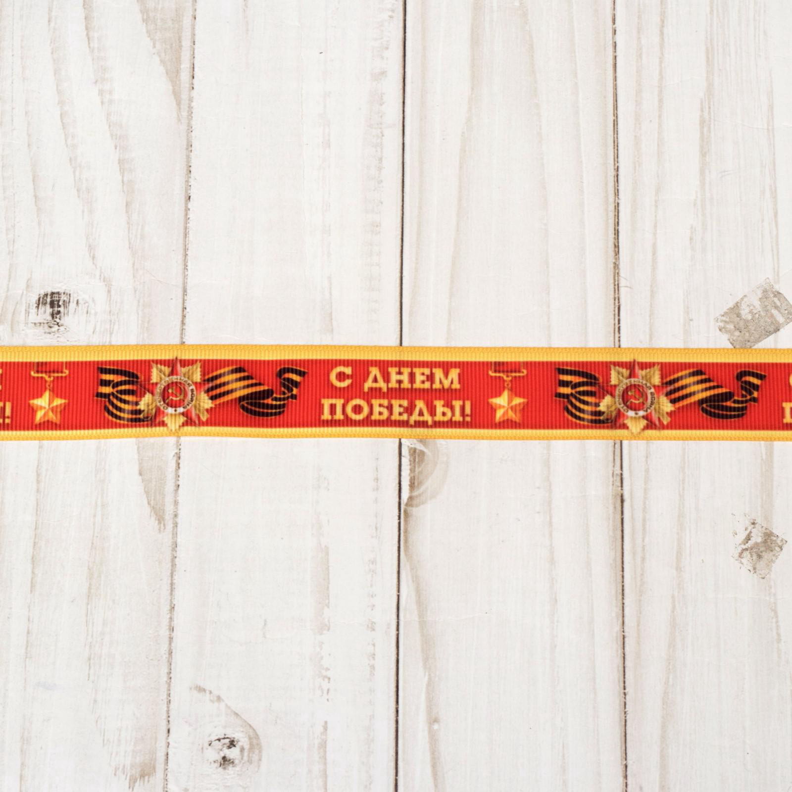 Лента репсовая "С Днём победы", 25 мм, 23 +- 1 м, цвет красный, 9x9x2.5 см., Арт Узор, Китай