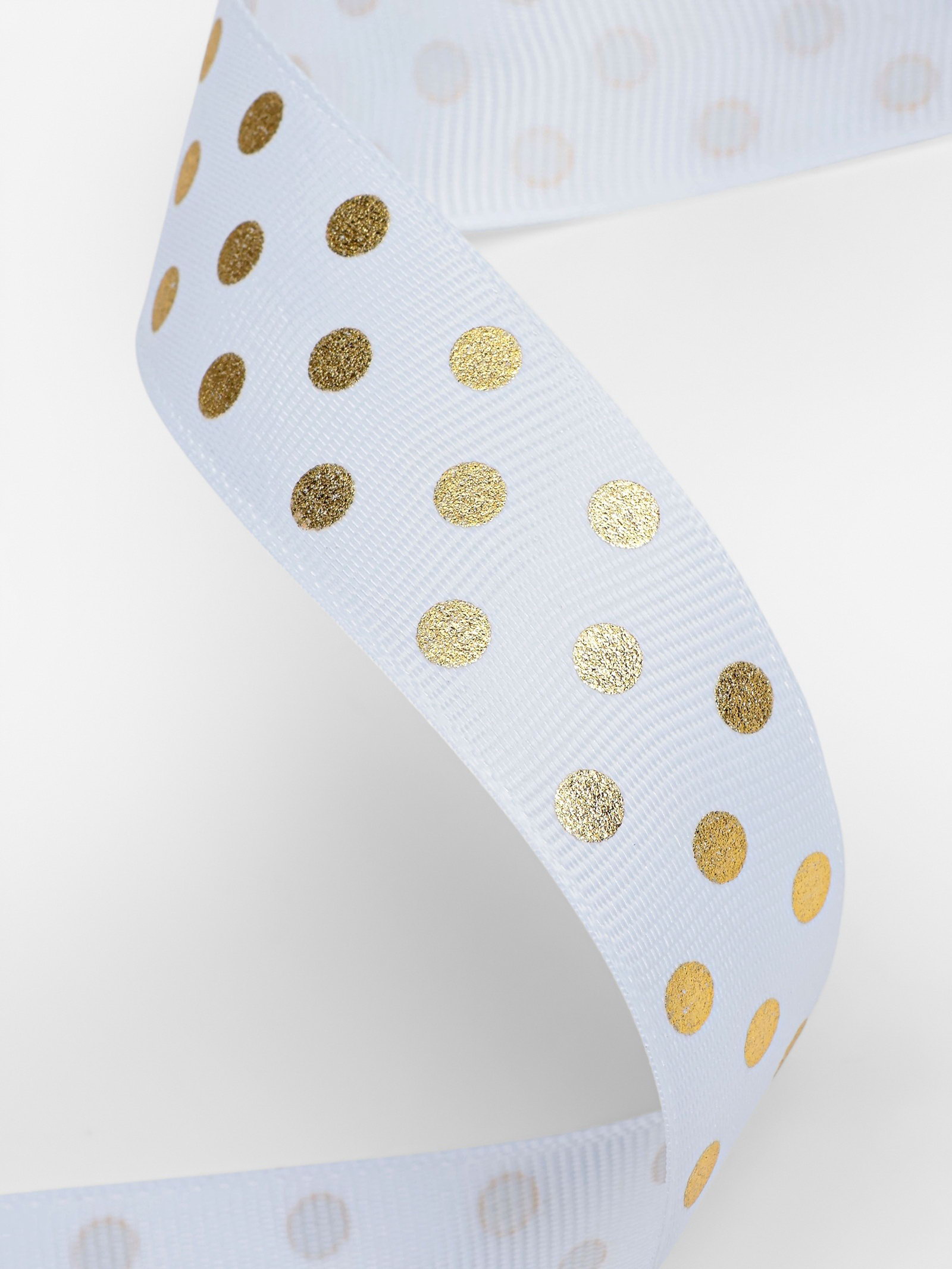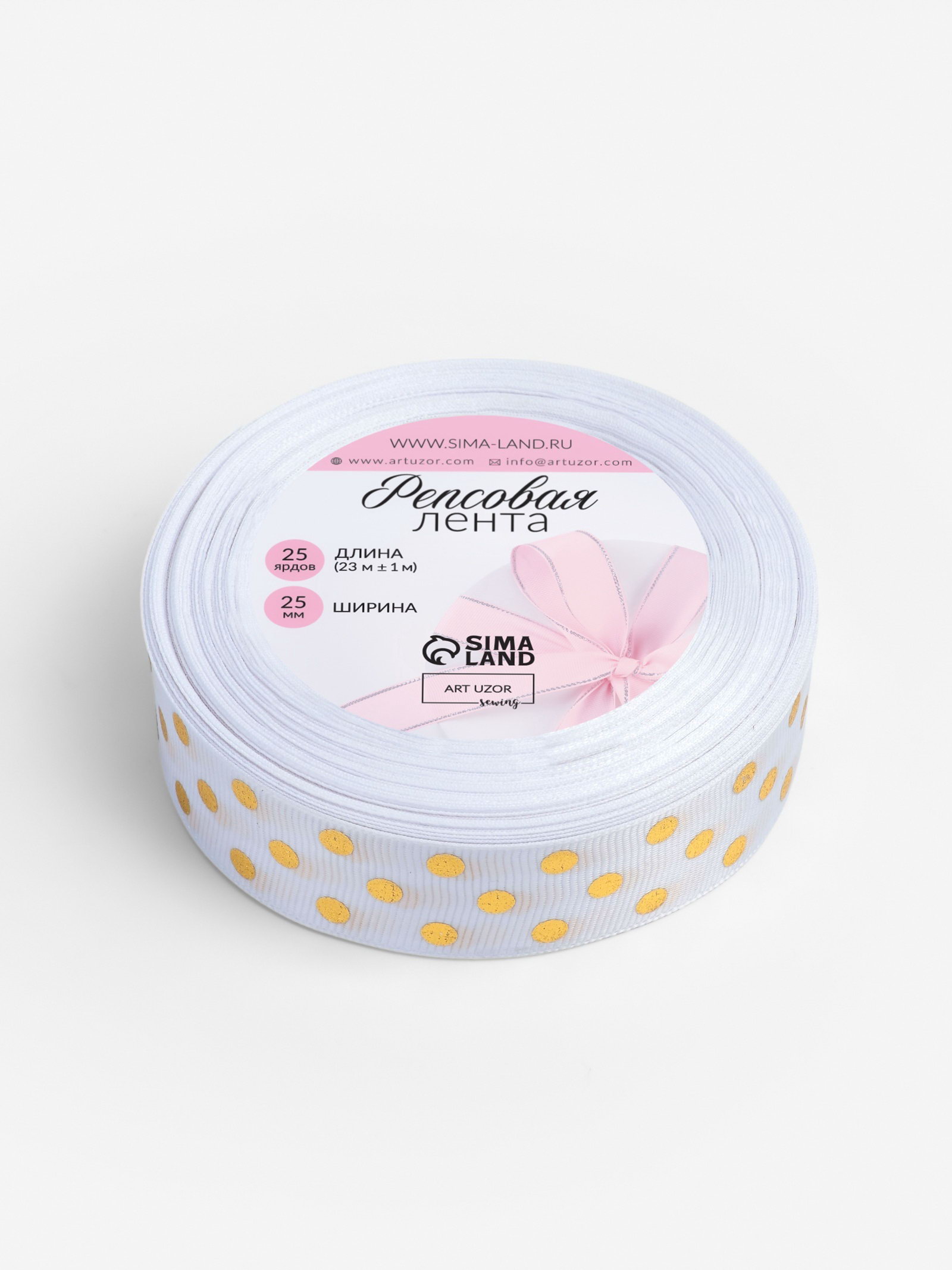 Лента репсовая с тиснением "Горох", 25 мм, 23+-1 м, белая №001, 9x9x2.5 см., Арт Узор, Китай