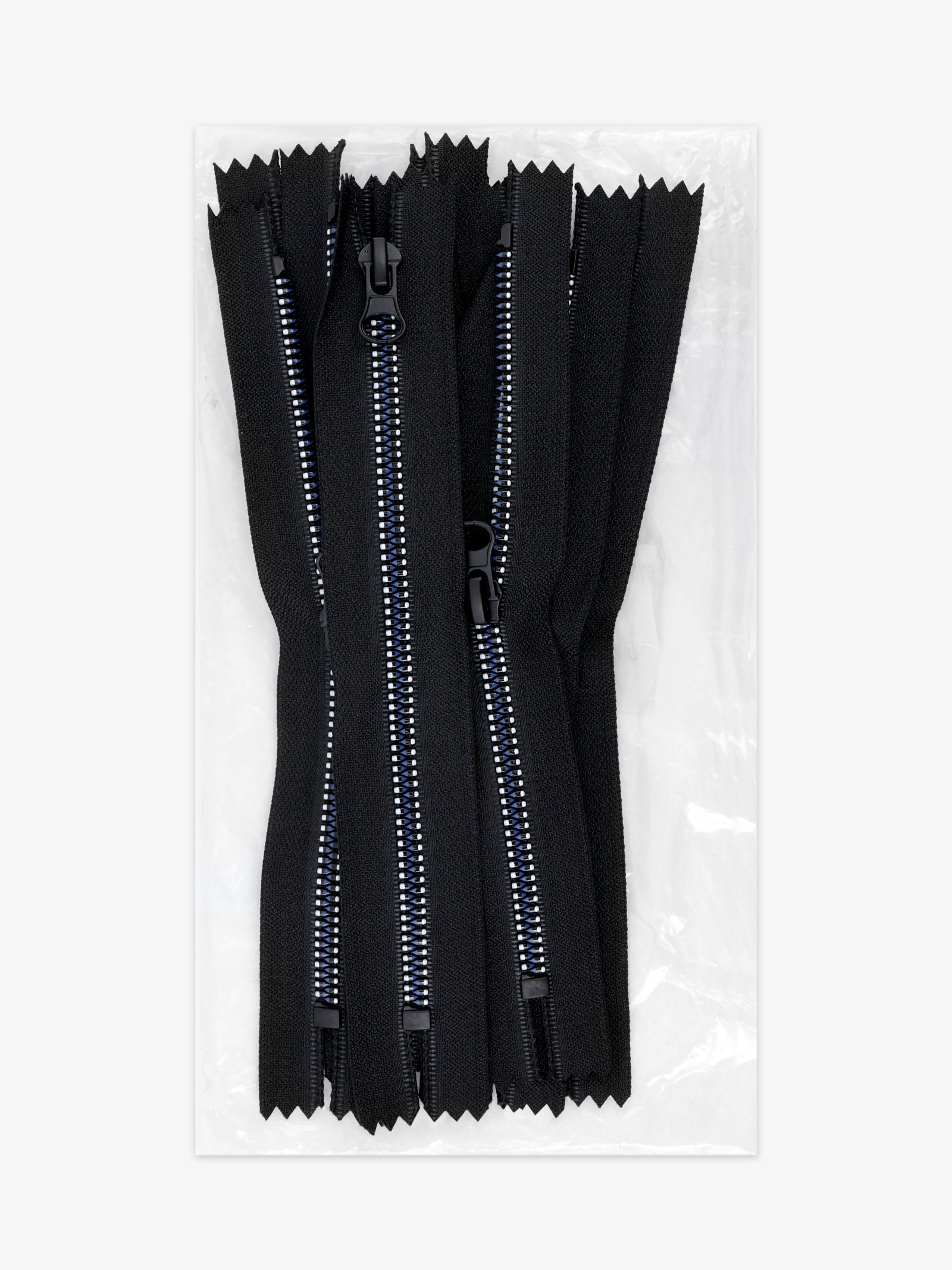 Молния "Трактор", №5, неразъёмная, замок автомат, 18 см, чёрная, белая, синяя, 3x21x0.1 см., Китай