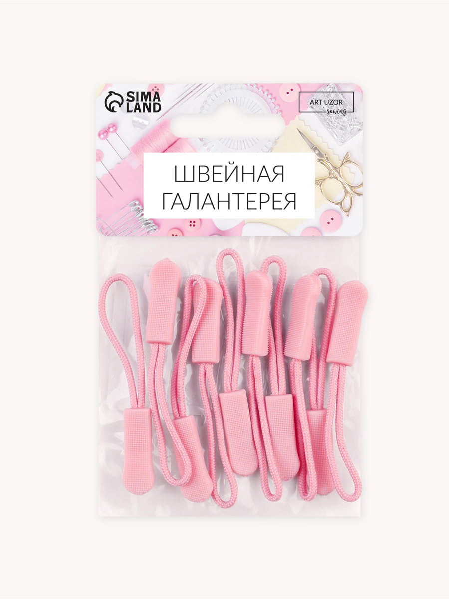 Пуллер для молнии, 2.5 см, 6x0.8 см, 10 шт., розовый, 6x7x1 см., Арт Узор, Китай