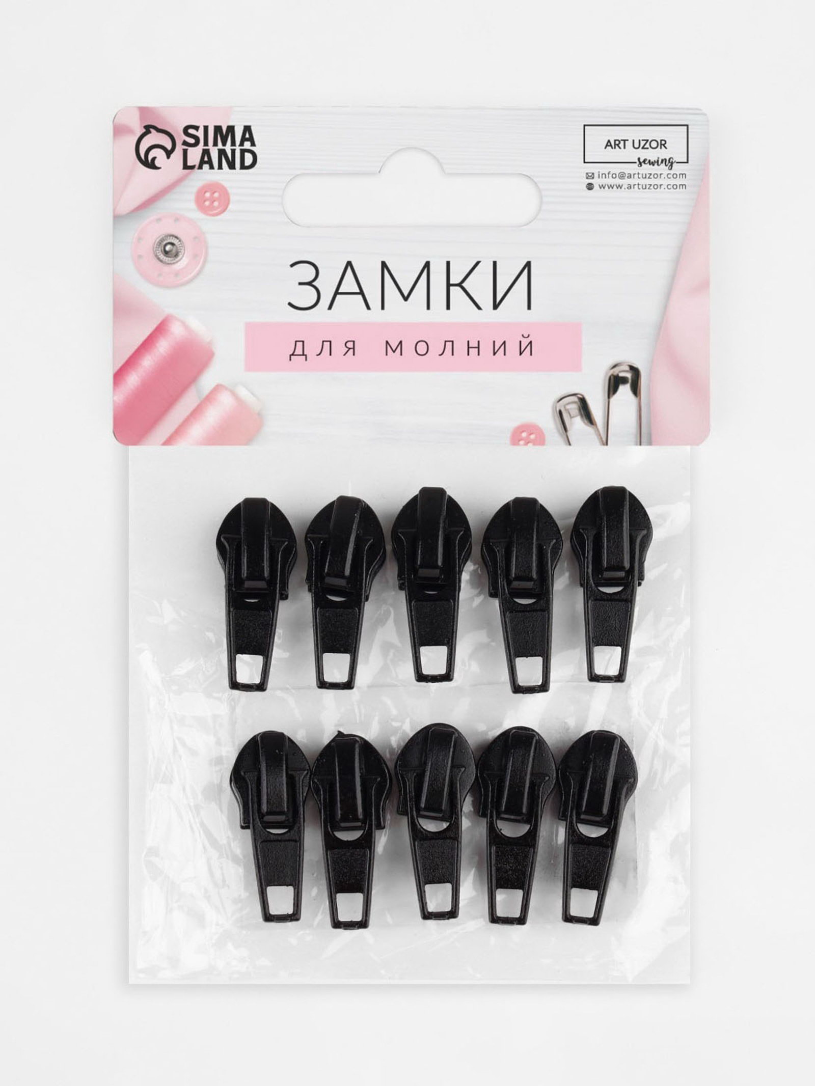 Бегунок автоматический для молнии "Спираль", №7, 10 шт., цвет чёрный, 7x10x1 см., Арт Узор, Китай