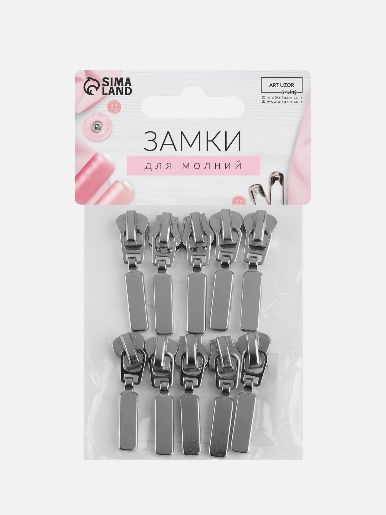 Бегунок для молнии "Трактор", автоматический, №5, 10 шт., цвет никель, 7x10x1 см., Арт Узор, Китай