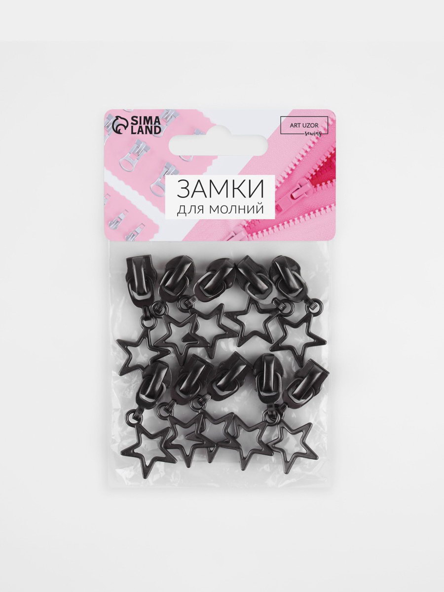 Бегунок полуавтоматический для молнии "Спираль", №7, "Звёзды", 10 шт., цвет чёрный никель, 7x10x0.5 см., Арт Узор, Китай