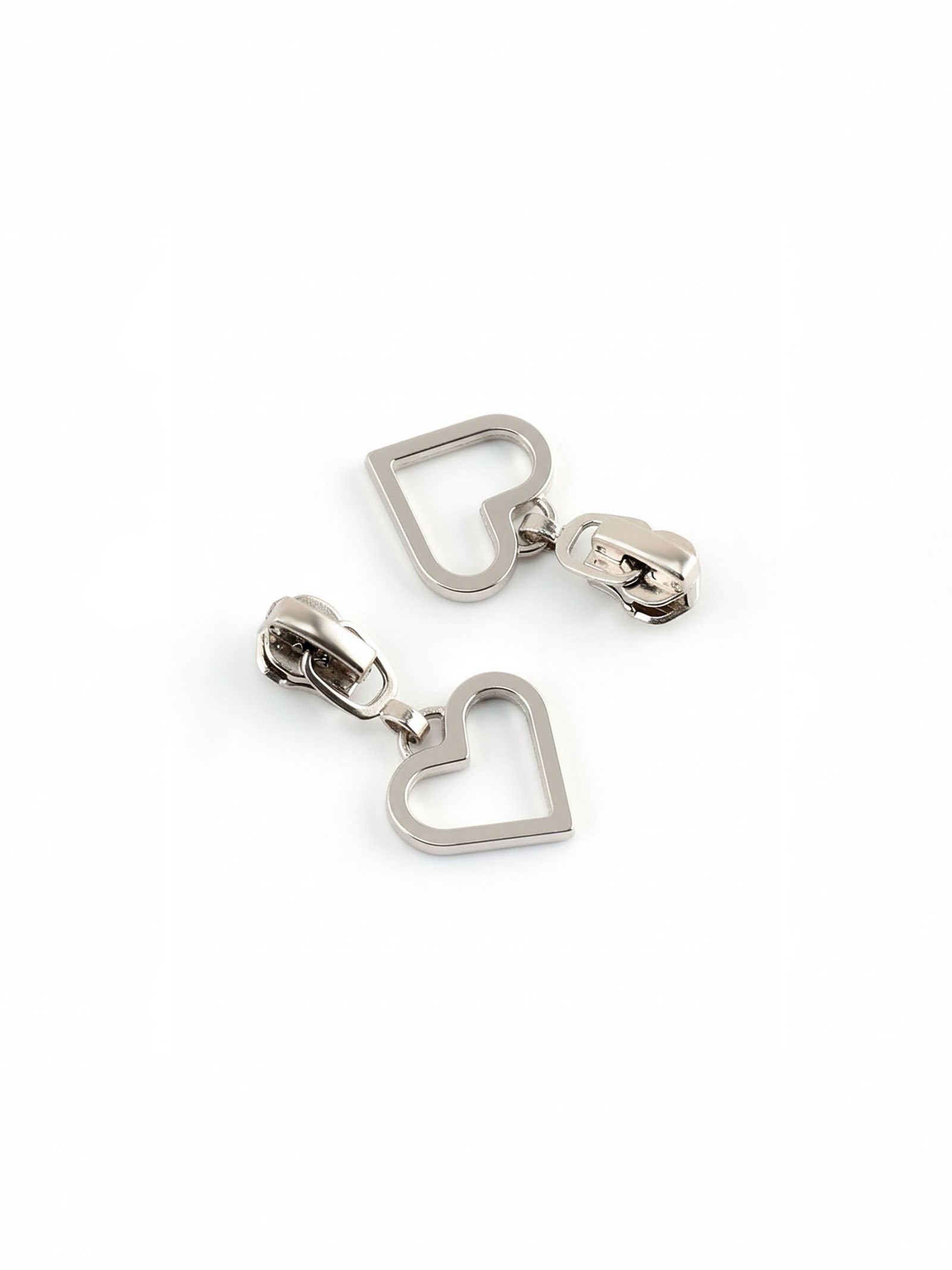 Бегунок для металлической молнии, №3, "Сердце", 10 шт., цвет никель, 6x7x1 см., Арт Узор, Китай