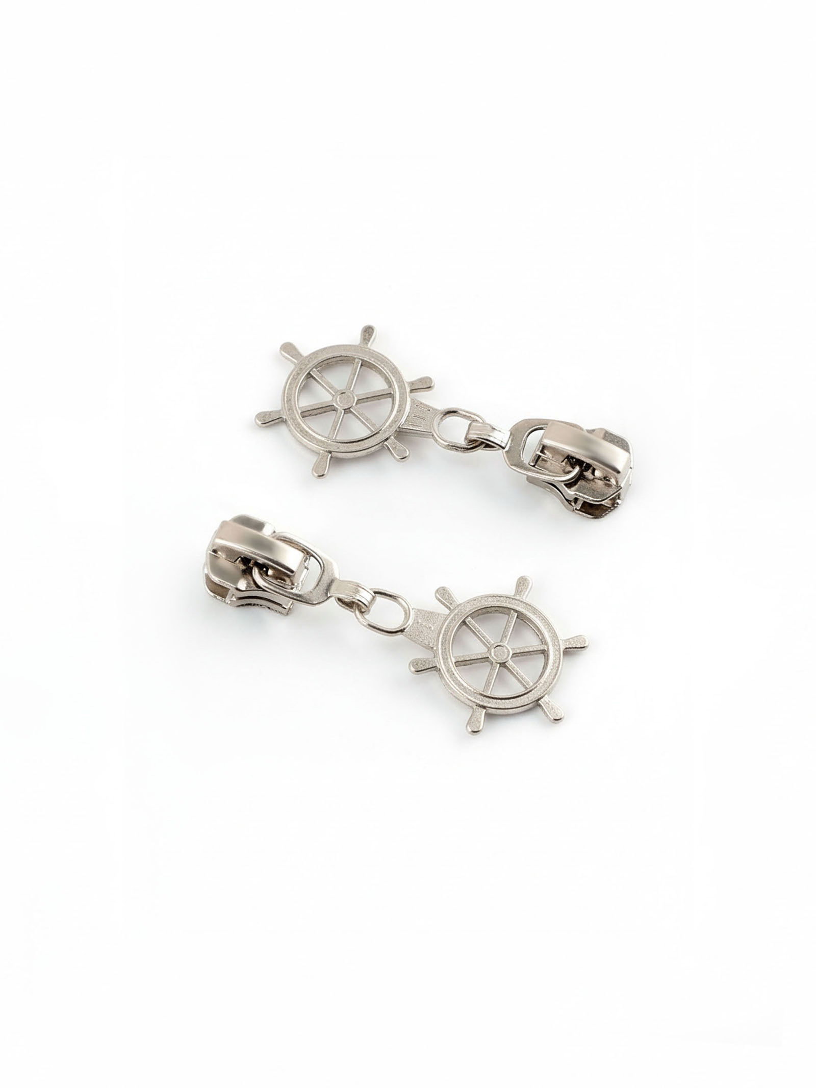 Бегунок для металлической молнии, №5, "Штурвал", 10 шт., цвет никель, 6x7x1 см., Арт Узор, Китай