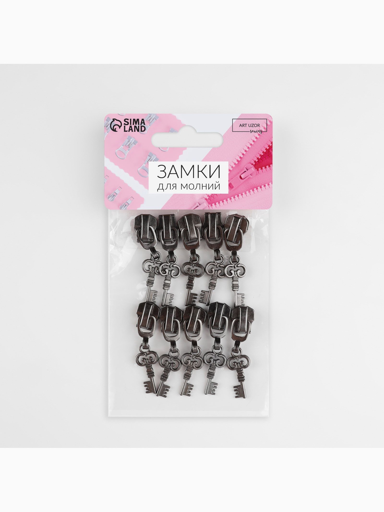 Бегунок для металлической молнии, №5, "Ключ", 10 шт., цвет чёрный никель, 6x7x1 см., Арт Узор, Китай