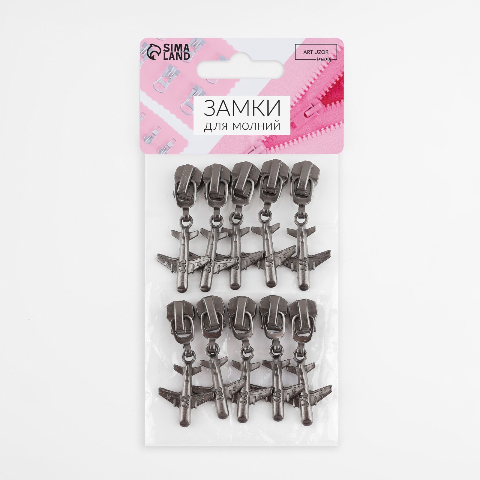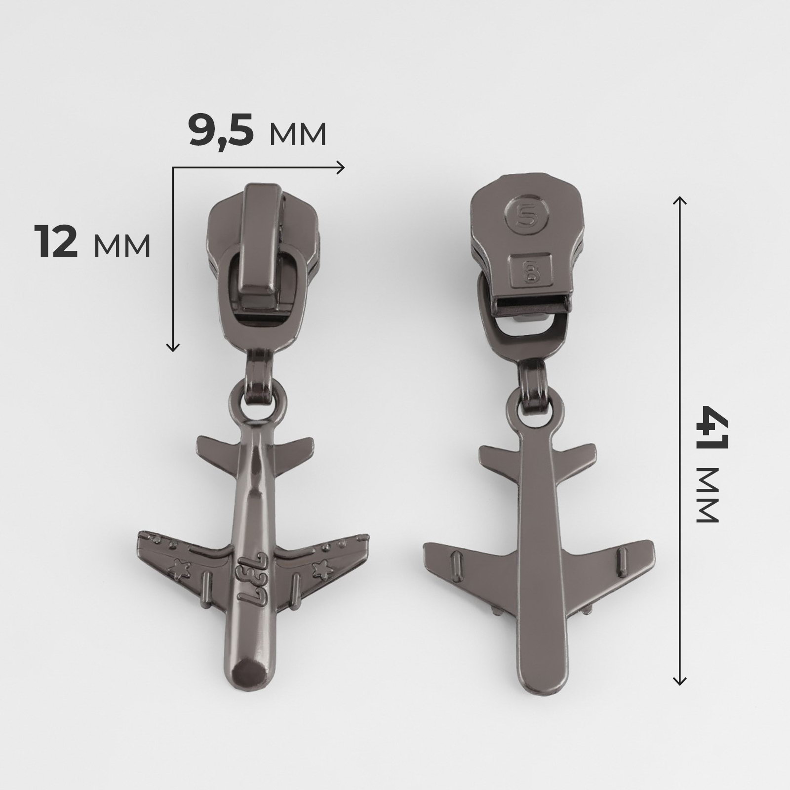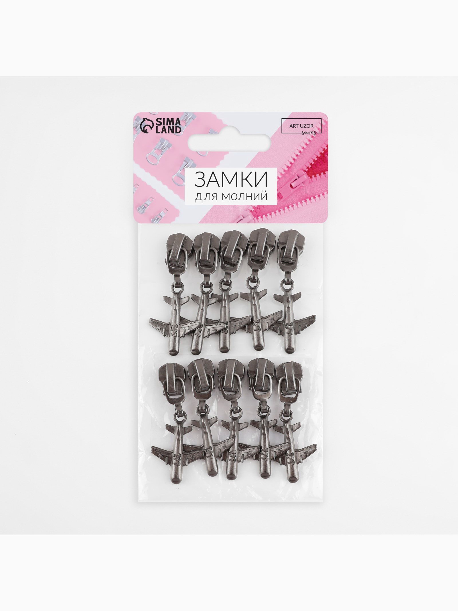 Бегунок для металлической молнии, №5, "Самолёт", 10 шт., цвет чёрный никель, 6x7x1 см., Арт Узор, Китай