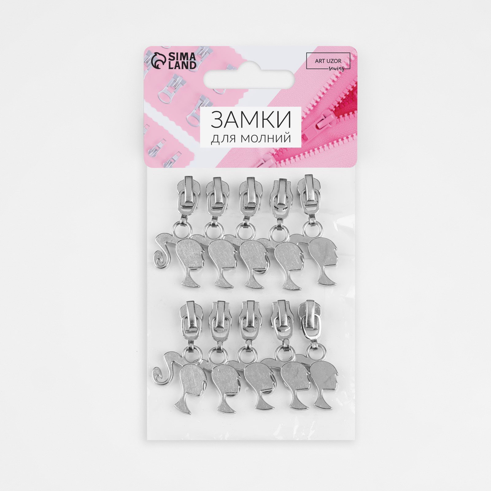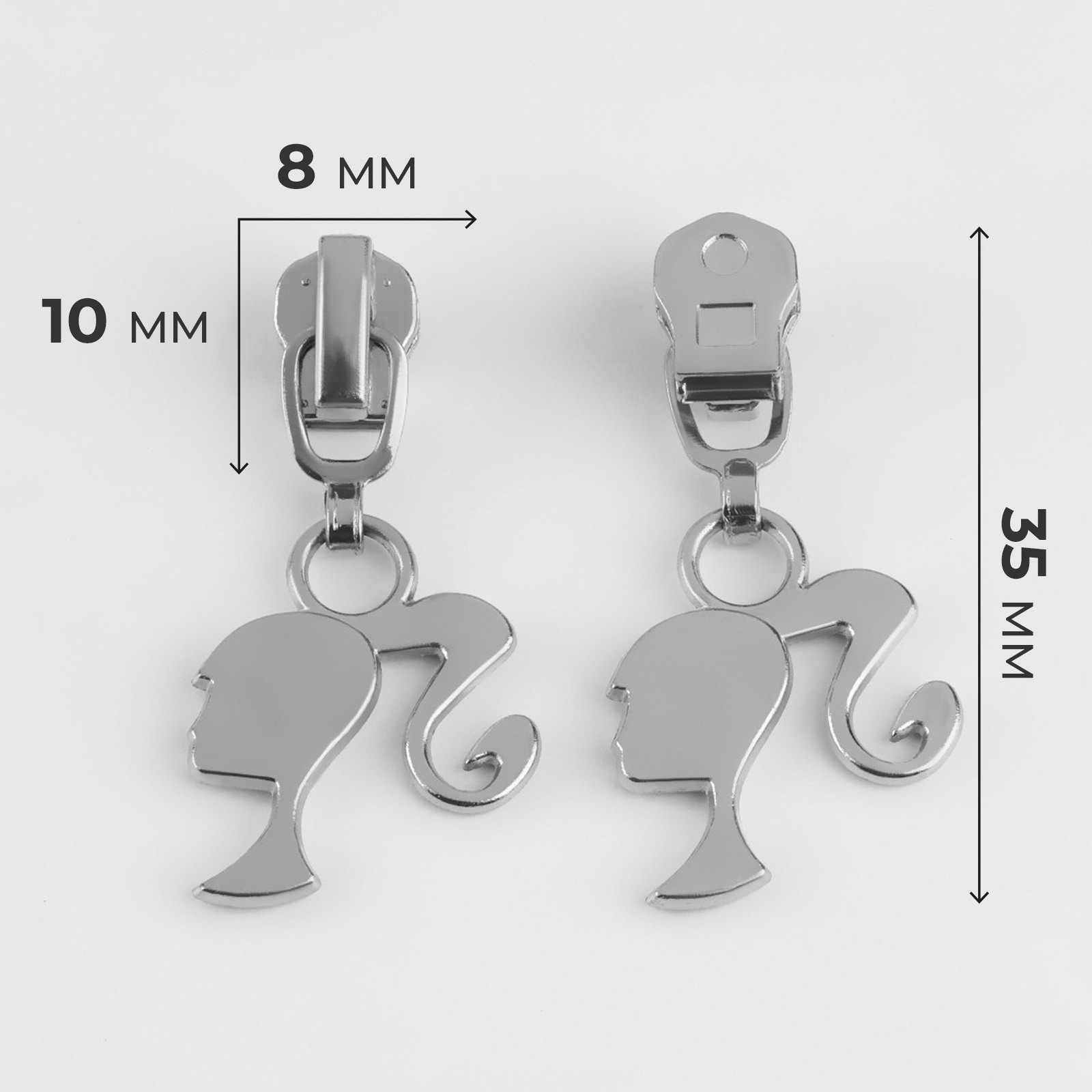 Бегунок для металлической молнии, №3, "Кукла", 10 шт., цвет никель, 6x7x1 см., Арт Узор, Китай