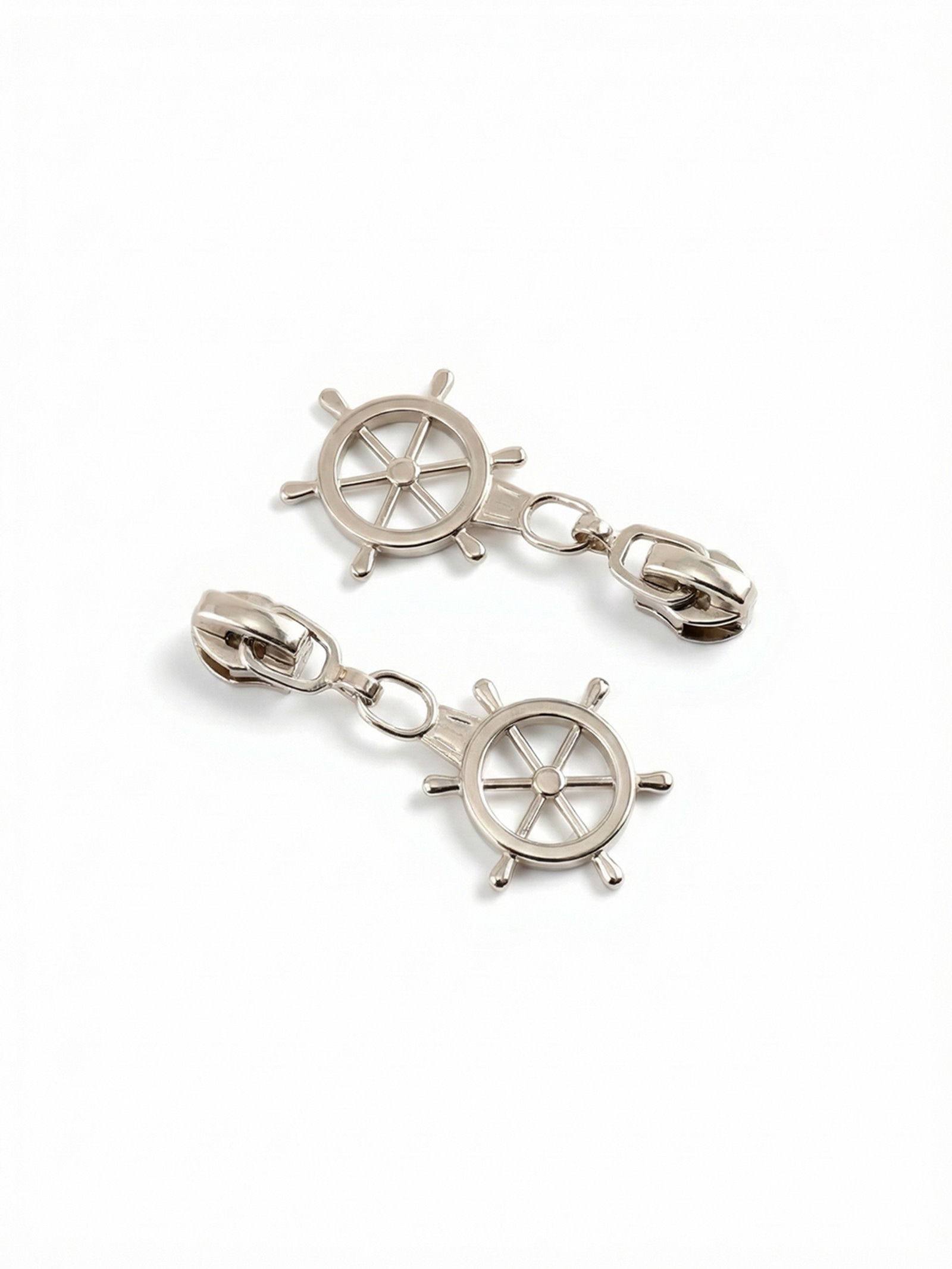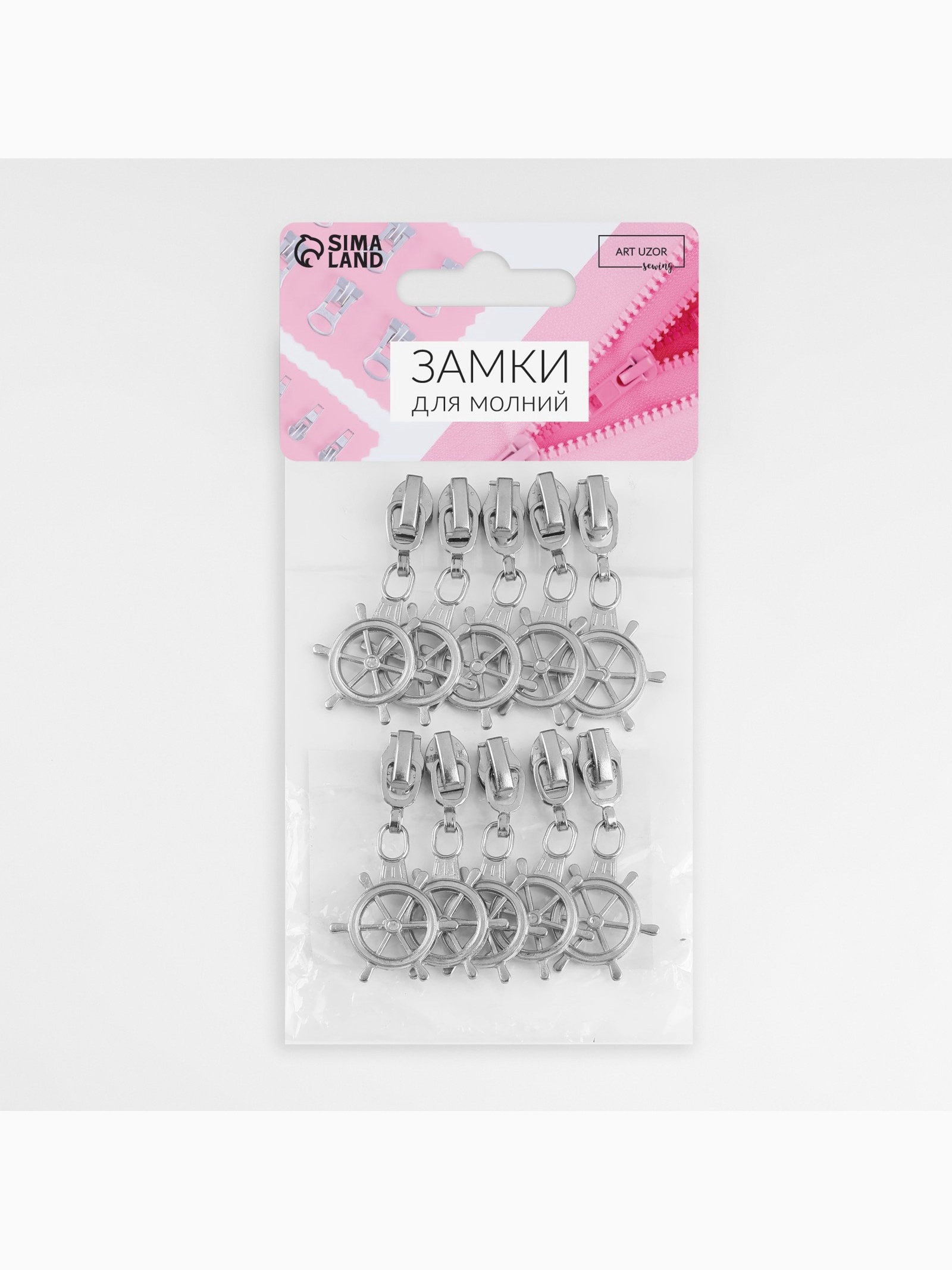 Бегунок для молнии "Спираль", №3, "Штурвал", 10 шт., цвет никель, 6x7x1 см., Арт Узор, Китай