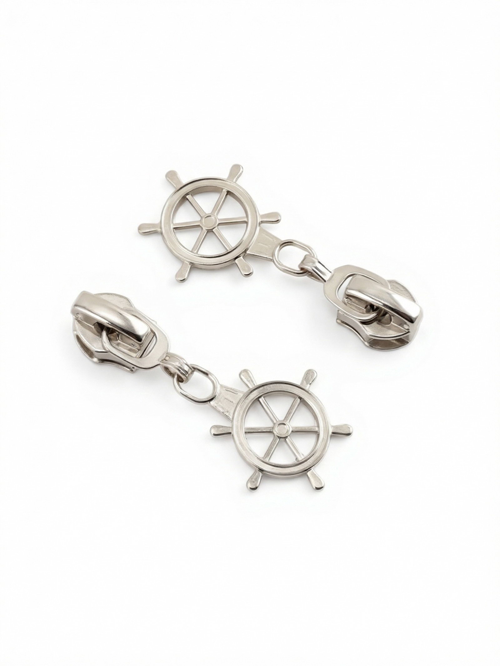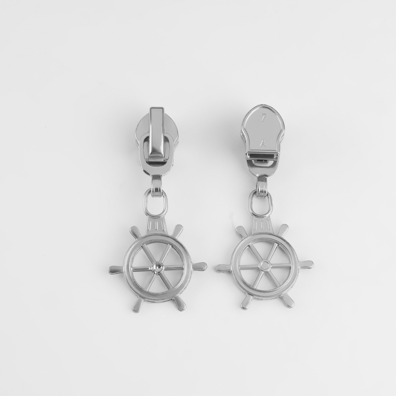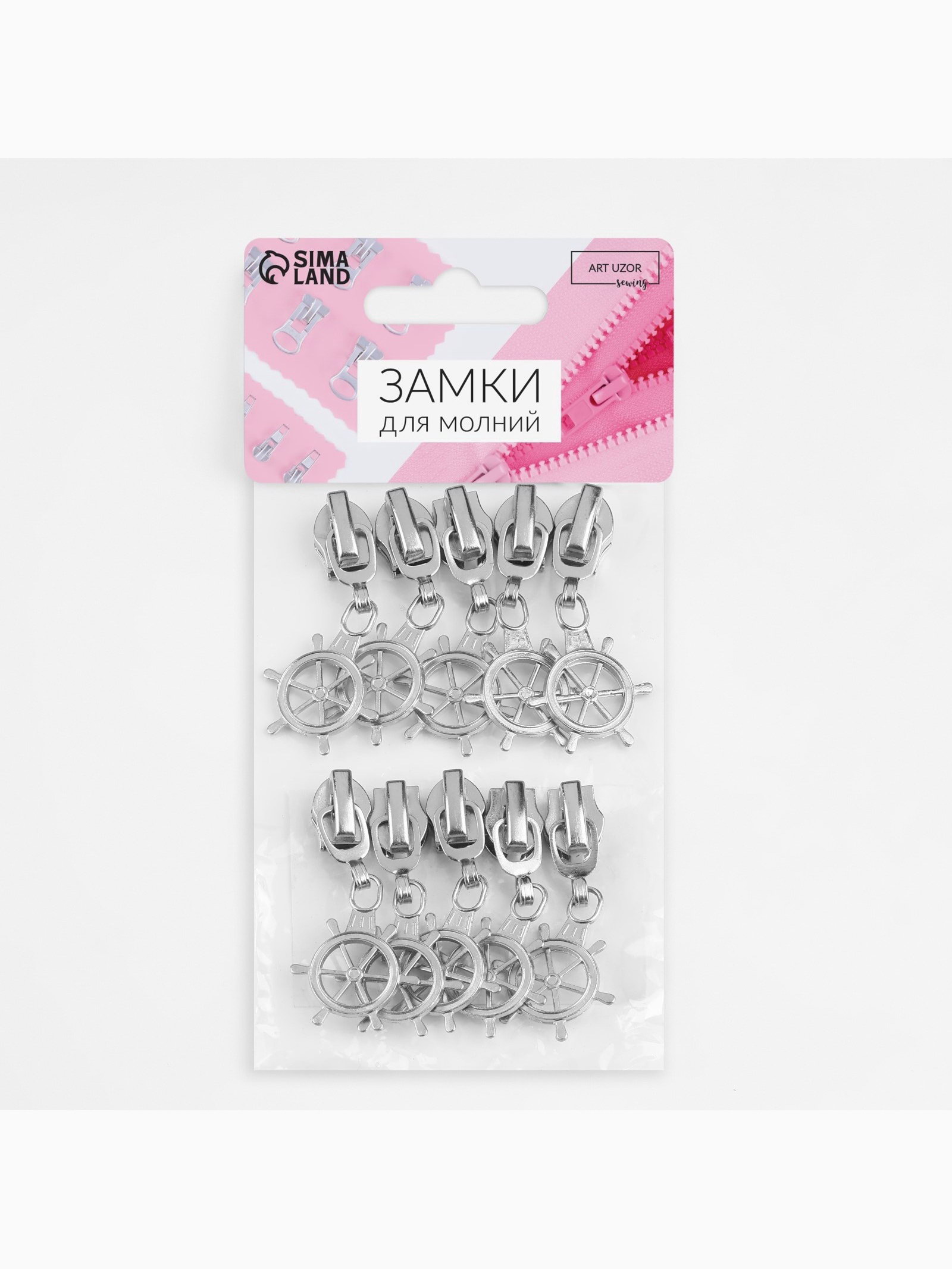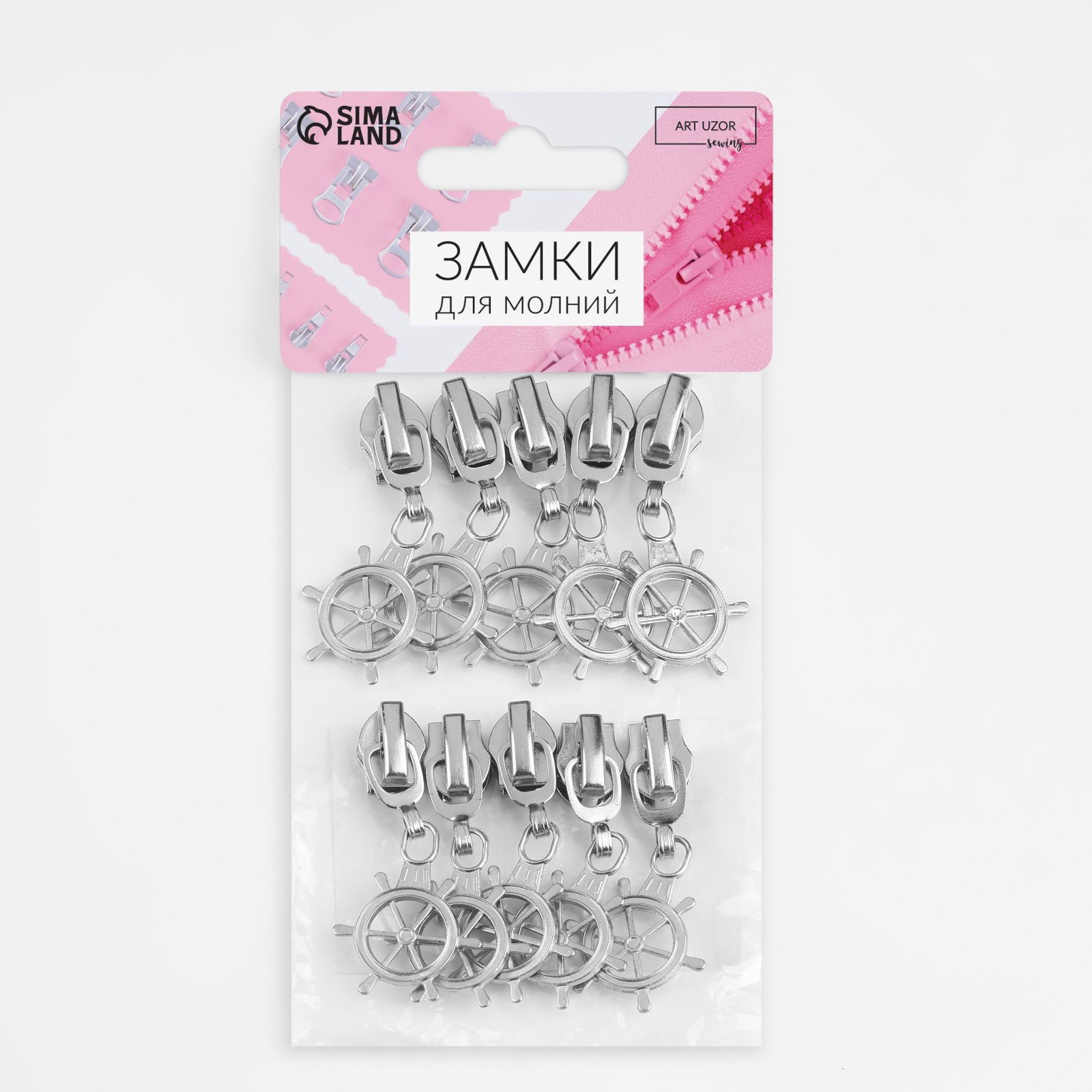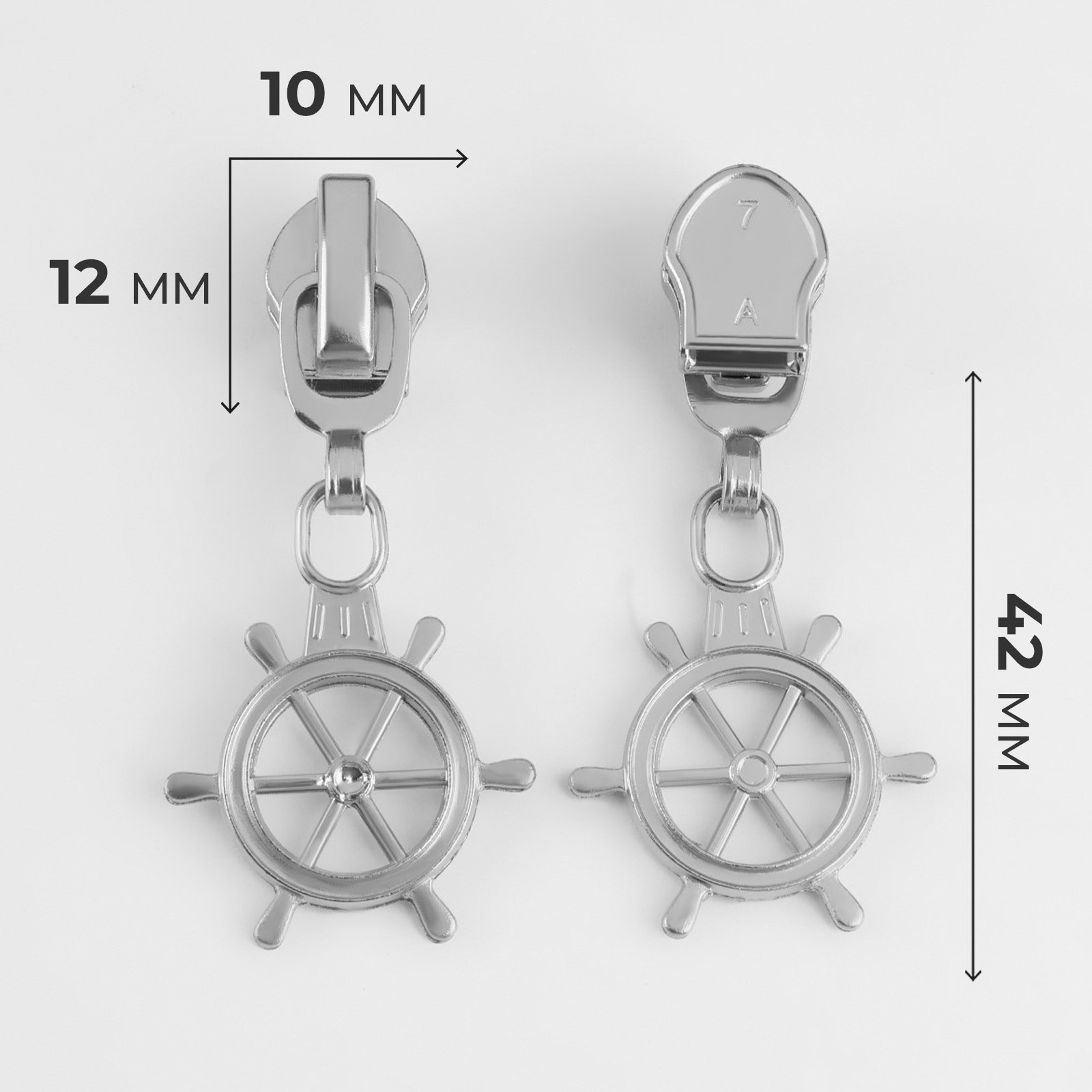 Бегунок для молнии "Спираль", №7, "Штурвал", 10 шт., цвет никель, 6x7x1 см., Арт Узор, Китай