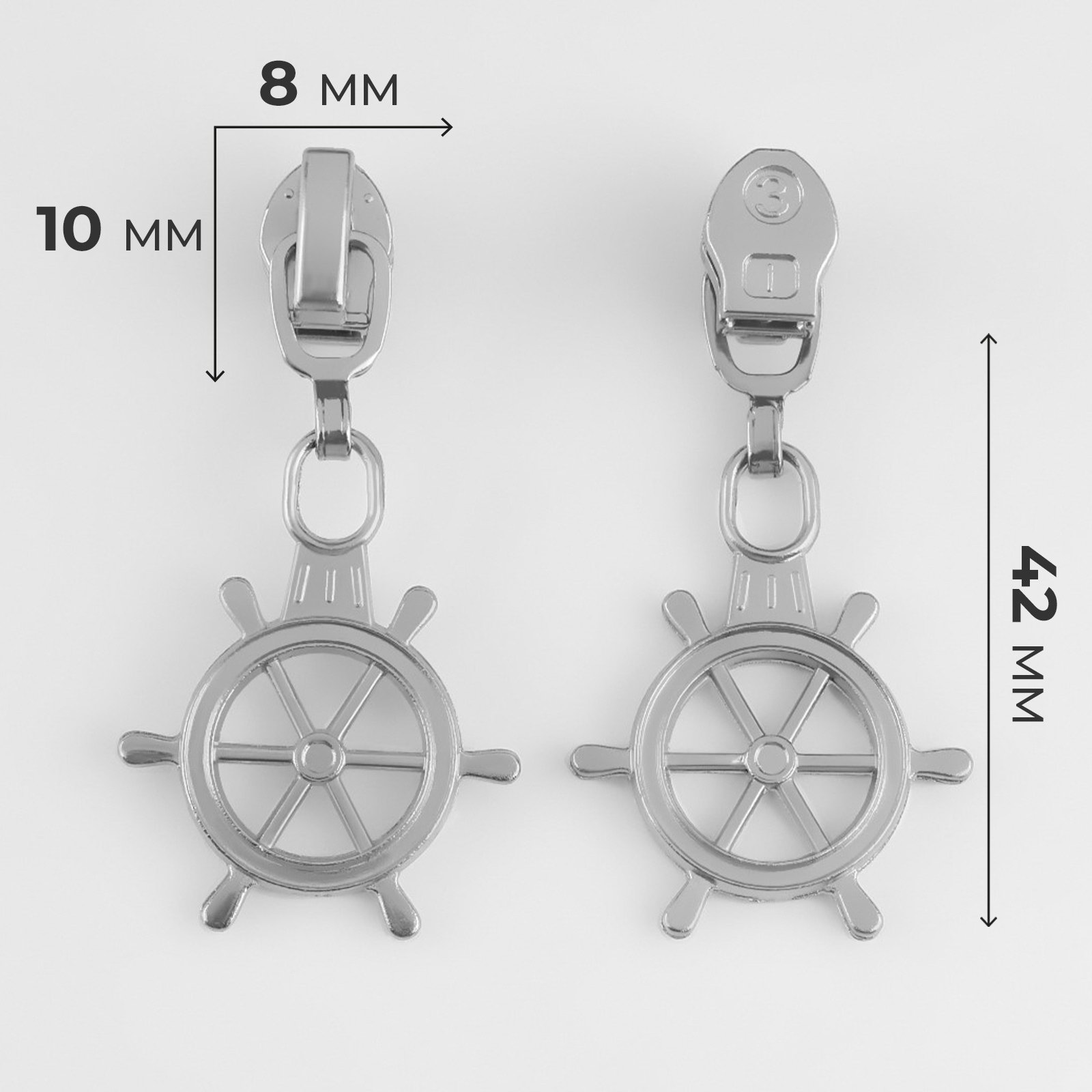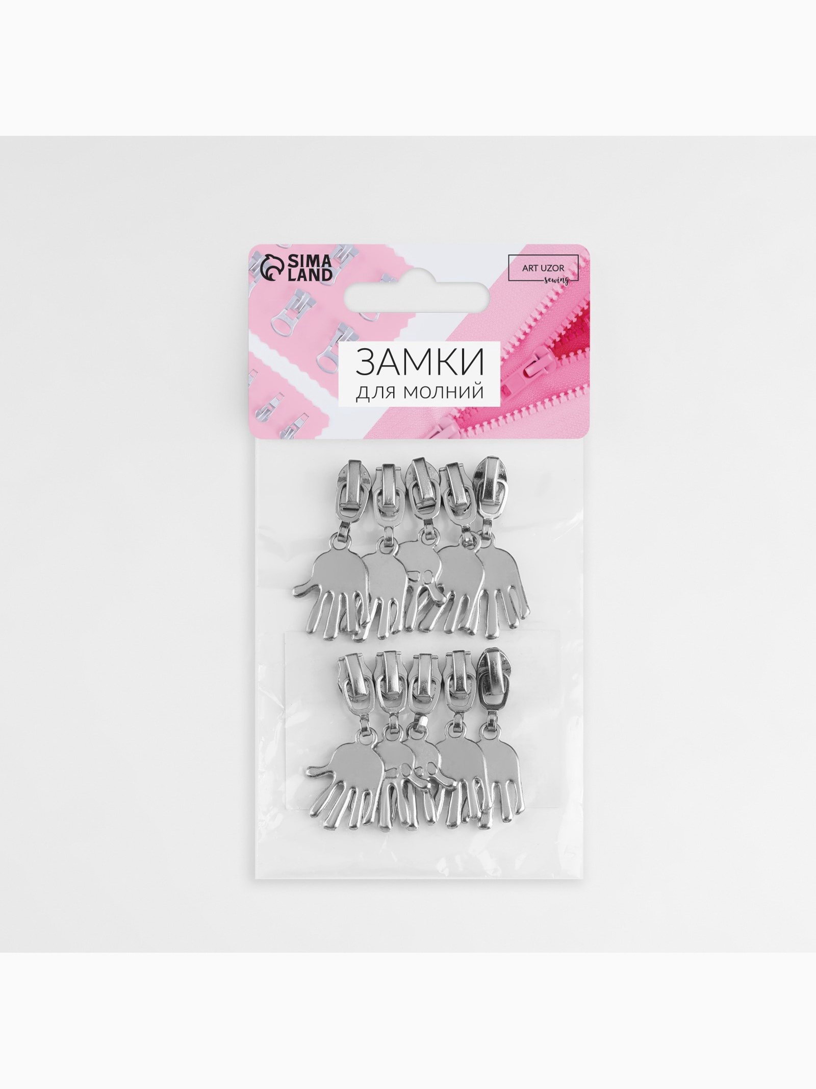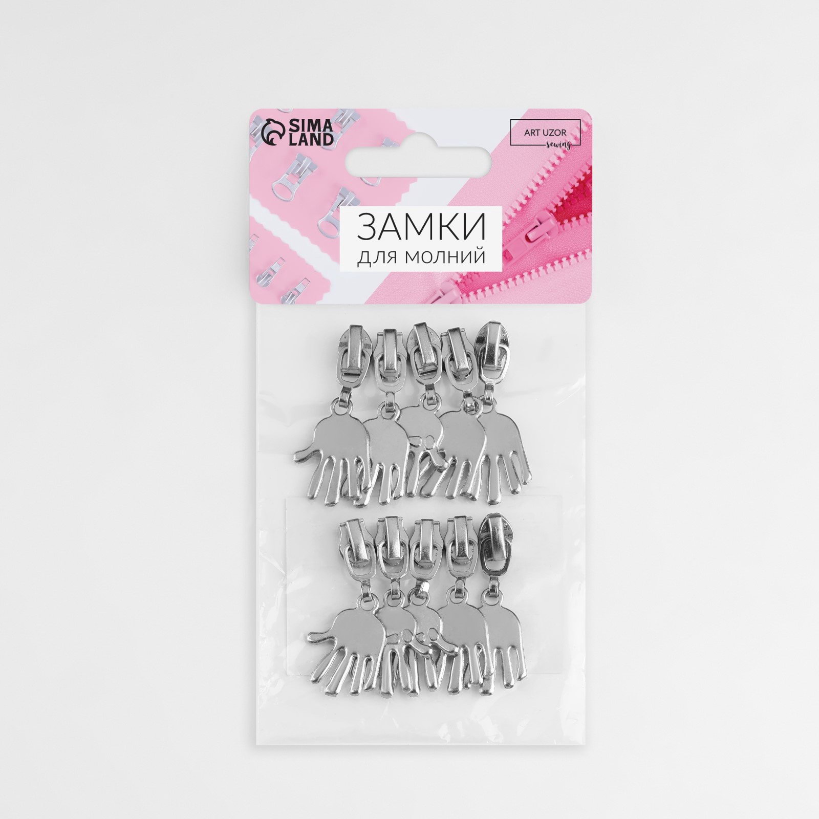Бегунок для молнии "Спираль", №3, "Ладонь", 10 шт., цвет никель, 6x7x1 см., Арт Узор, Китай