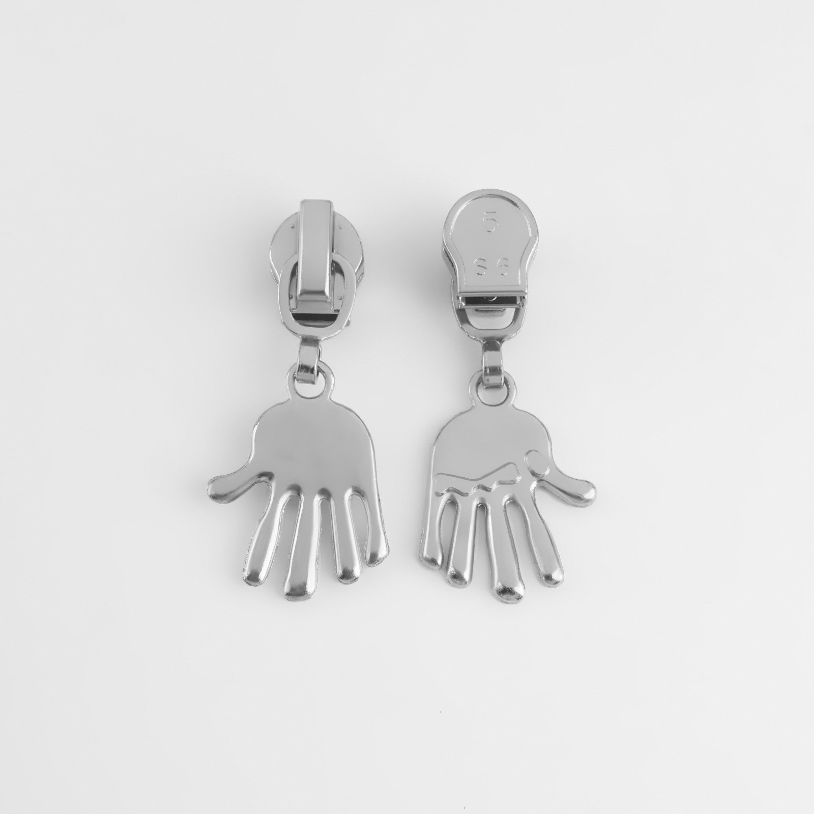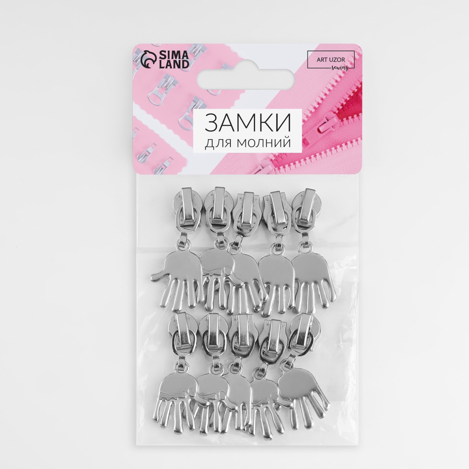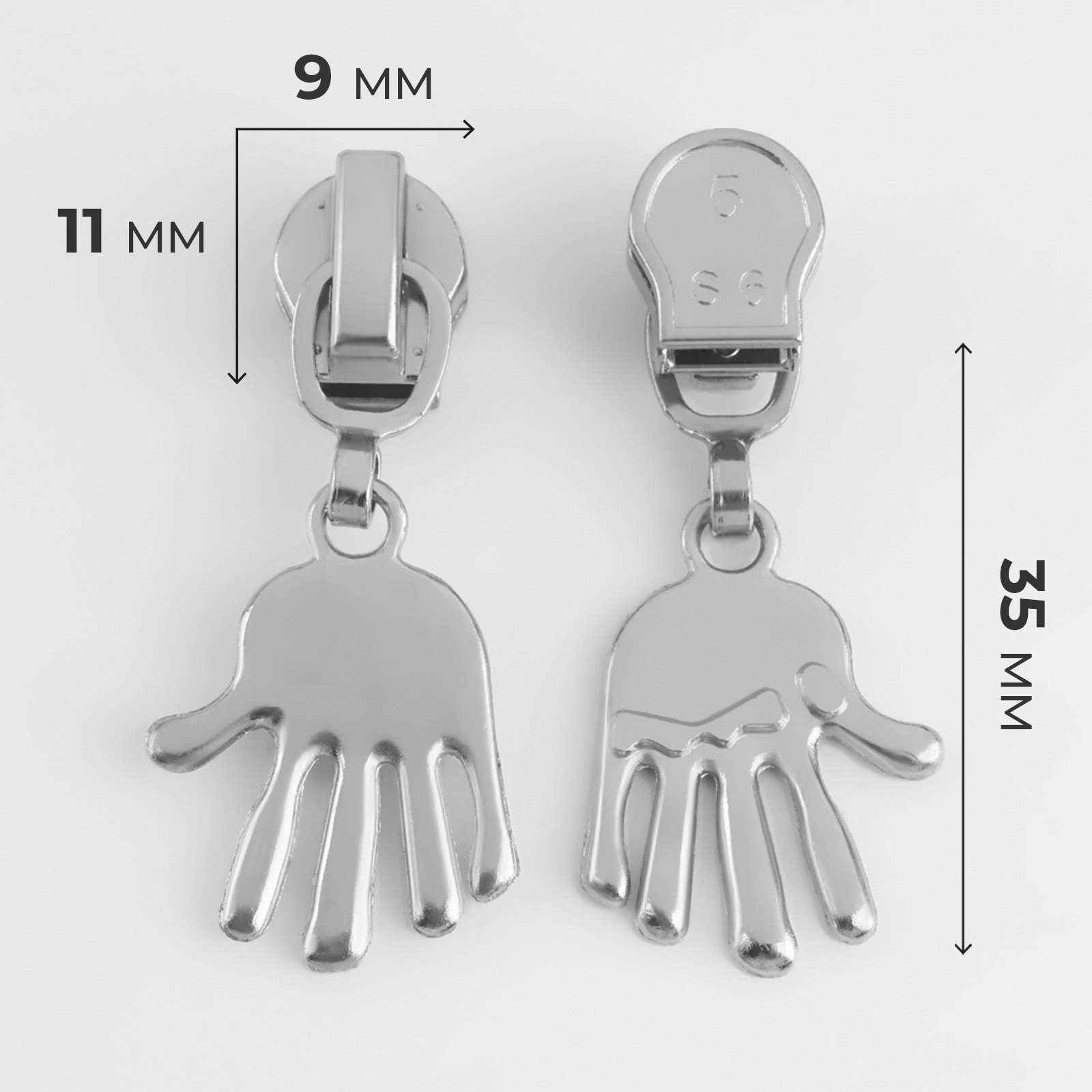 Бегунок для молнии "Спираль", №5, "Ладонь", 10 шт., цвет никель, 6x7x1 см., Арт Узор, Китай