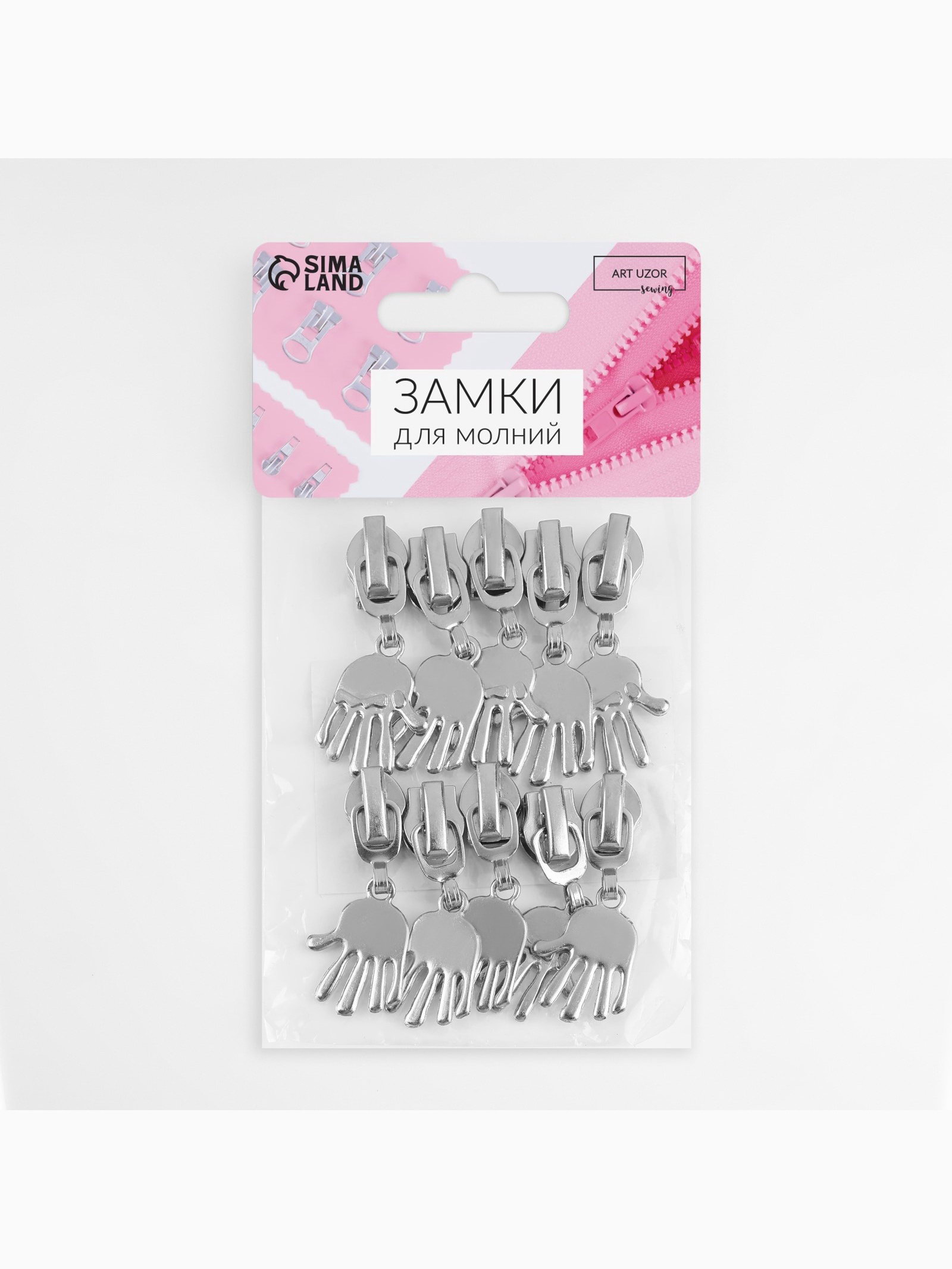 Бегунок для молнии "Спираль", №7, "Ладонь", 10 шт., цвет никель, 6x7x1 см., Арт Узор, Китай