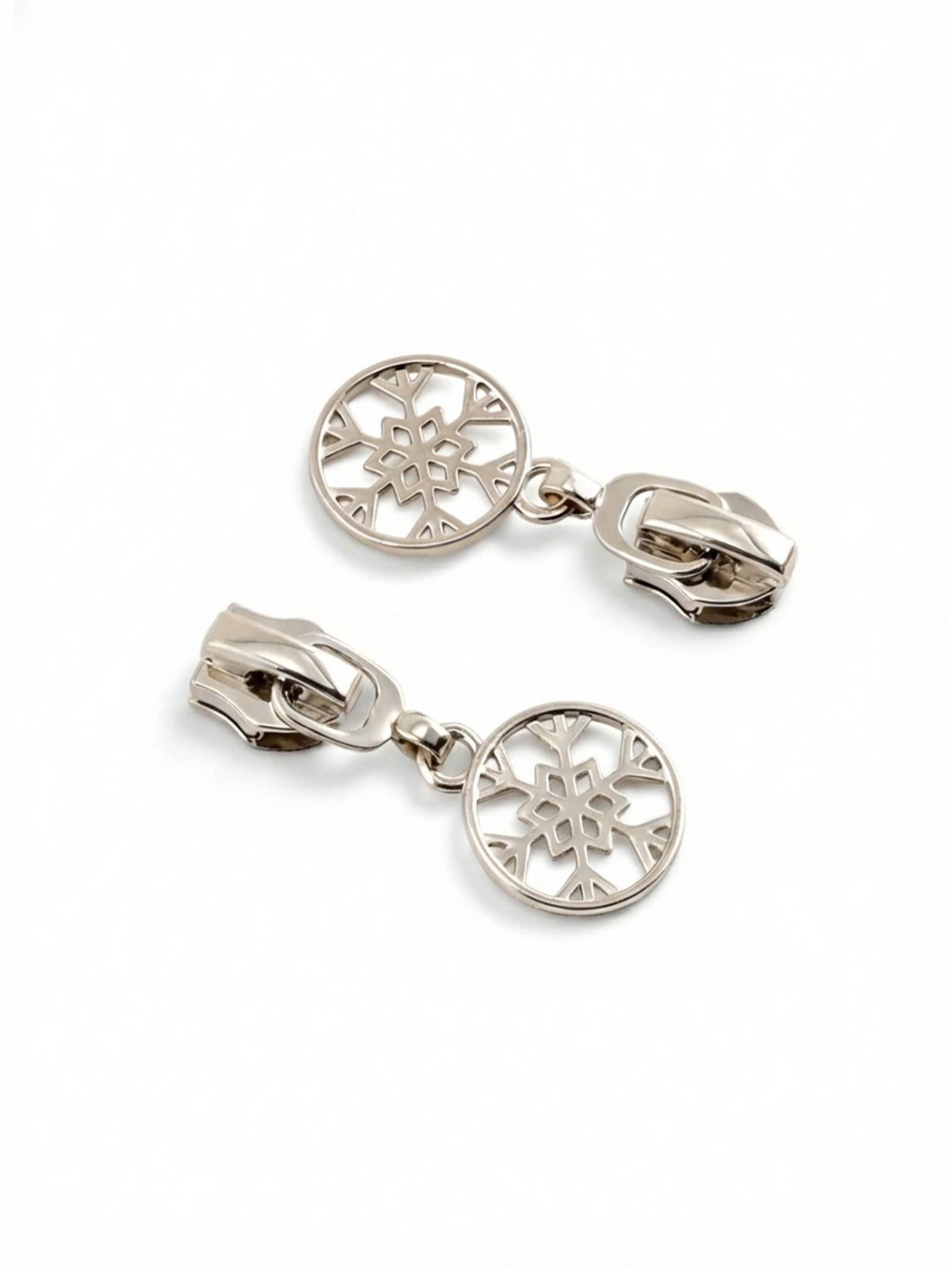Бегунок для молнии "Спираль", №7, "Снежинка", 10 шт., цвет никель, 6x7x1 см., Арт Узор, Китай