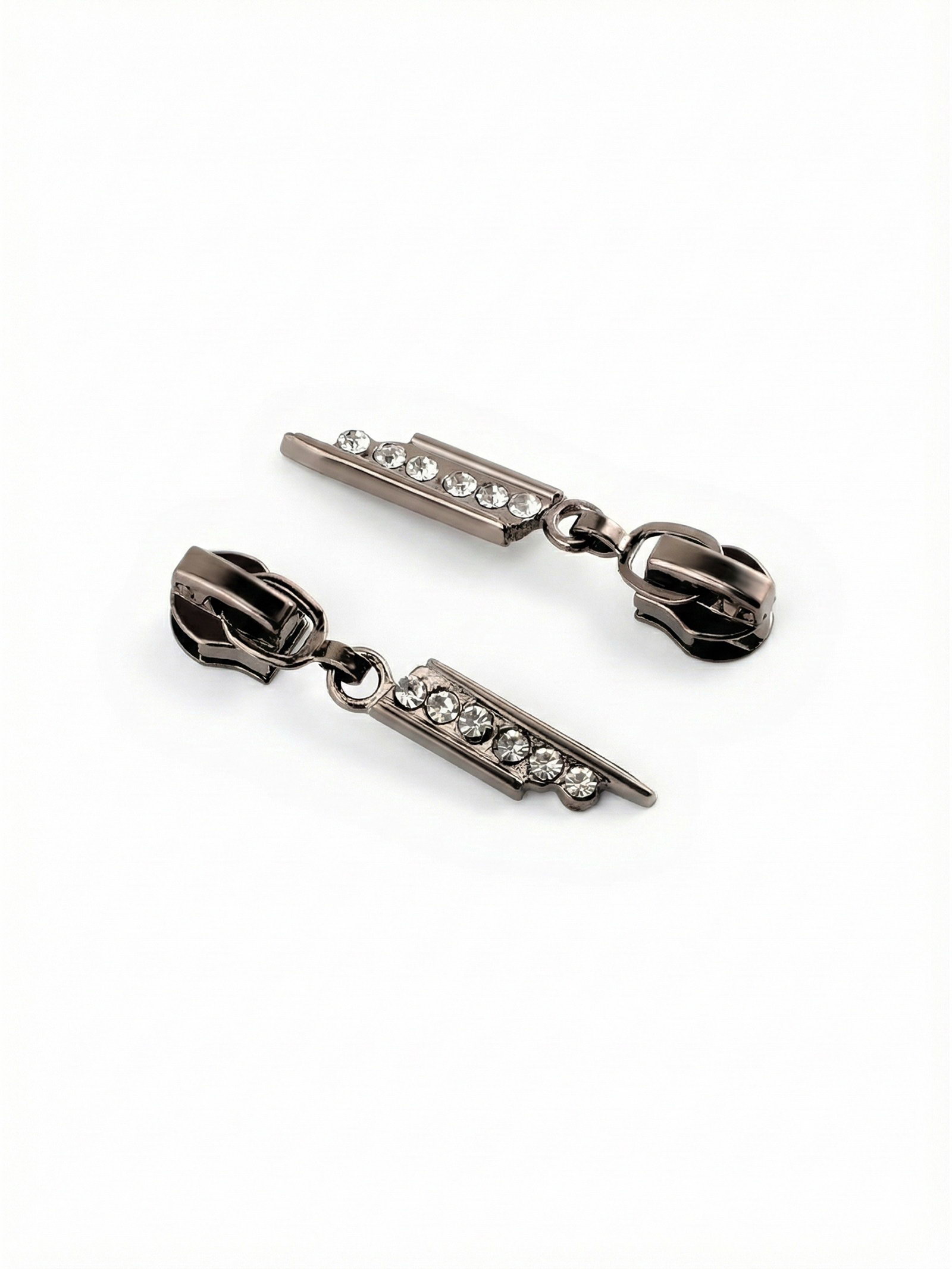 Бегунок для молнии "Спираль", №5, "Стразы", цвет чёрный никель, 6x7x1 см., Арт Узор, Китай
