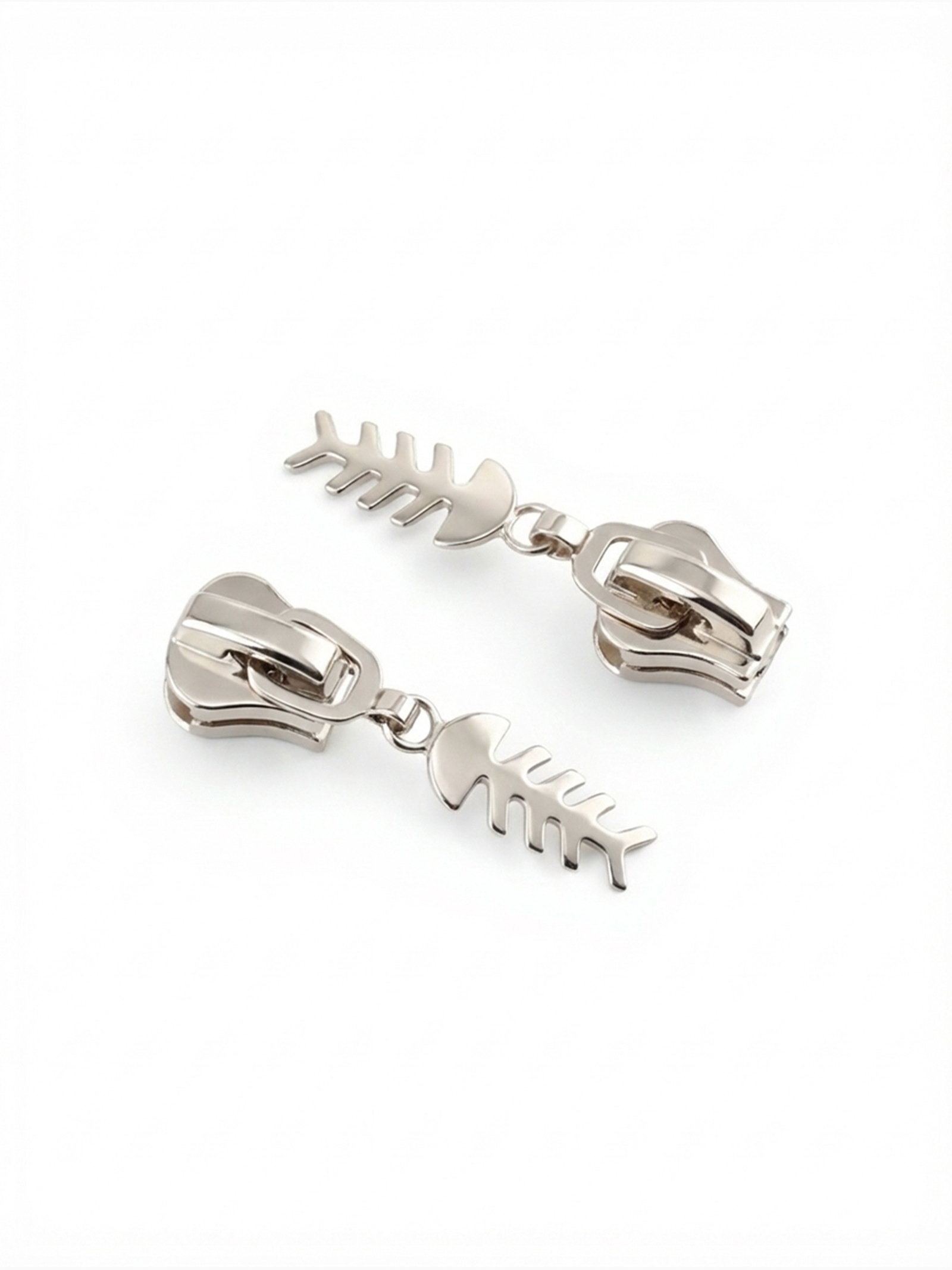 Бегунок для молнии "Трактор", №8, "Рыба", 10 шт., цвет никель, 6x7x1 см., Арт Узор, Китай