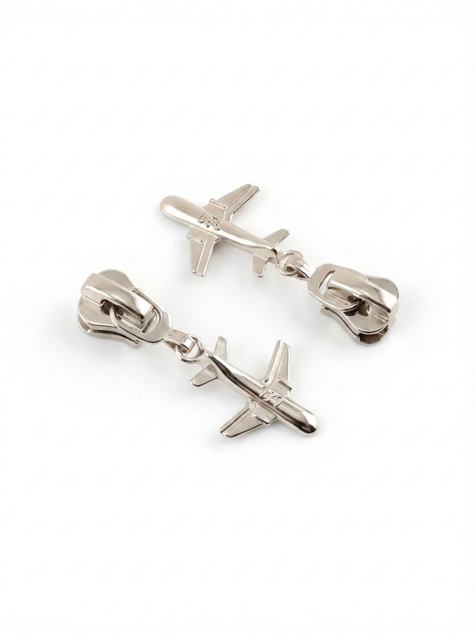 Бегунок для молнии "Трактор", №5, "Самолёт", 10 шт., цвет никель, 6x7x1 см., Арт Узор, Китай