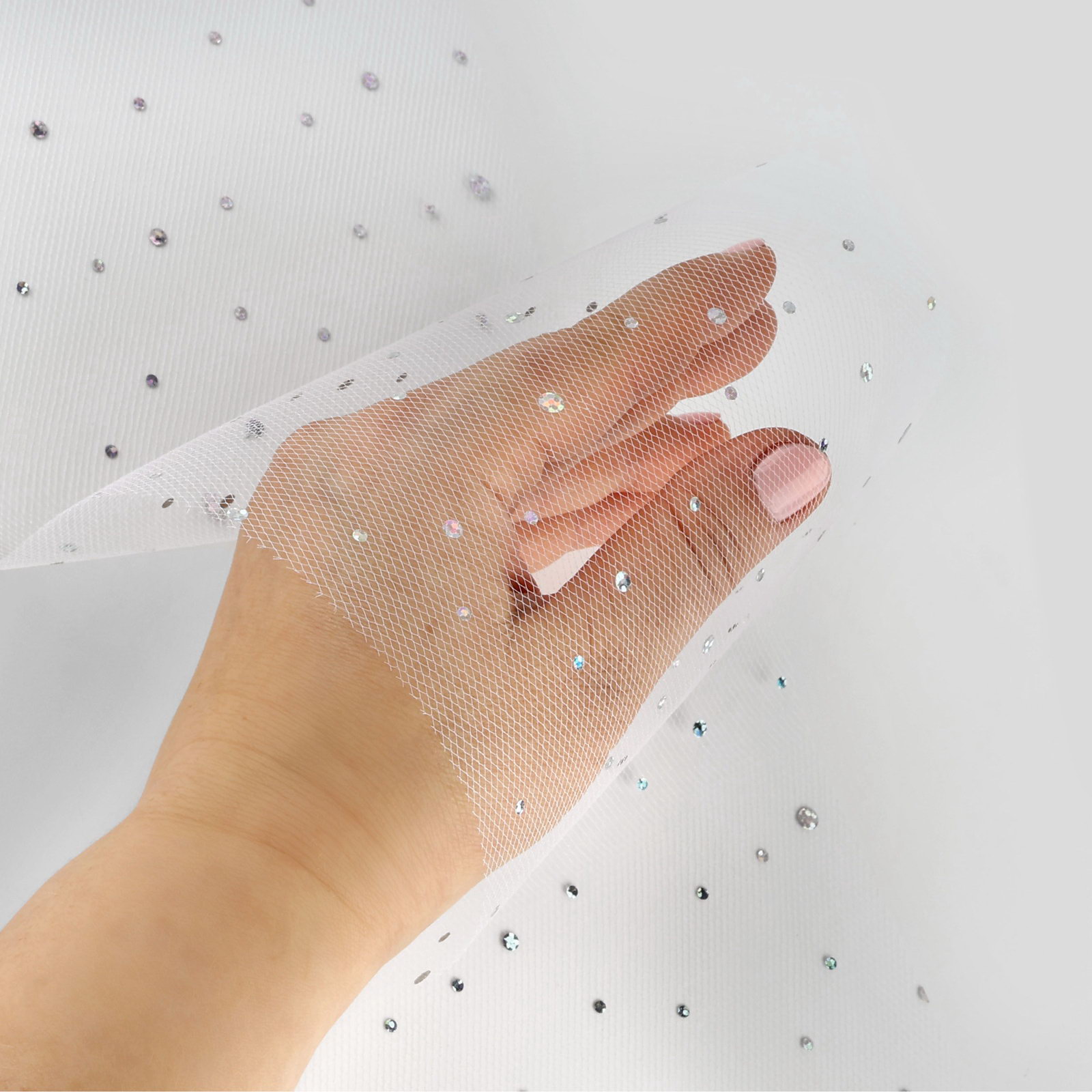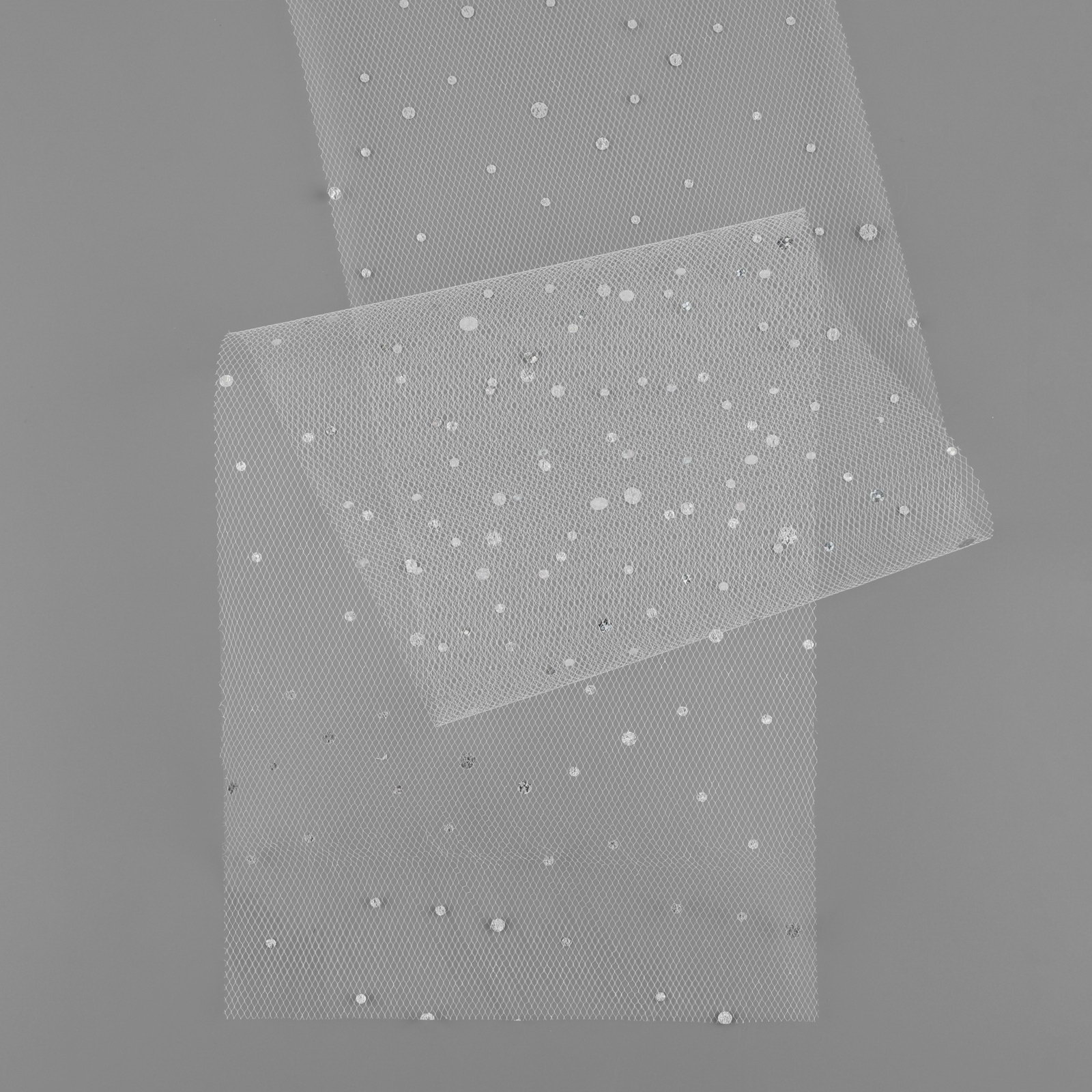 Фатин с блёстками, 15 см, 23+-1 м, 11+-1 г/?2, белый №1, 6x15x6 см., Китай