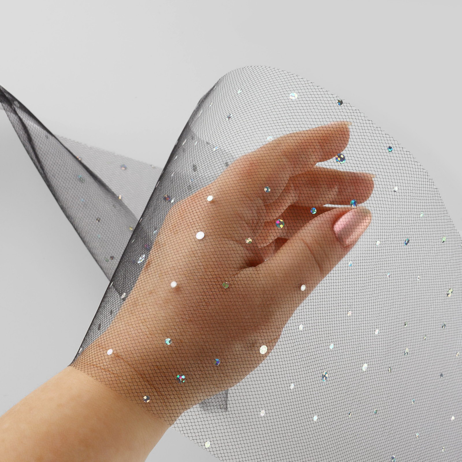 Фатин с блёстками, 15 см, 23+-1 м, чёрный №21, 6x15x6 см., Китай