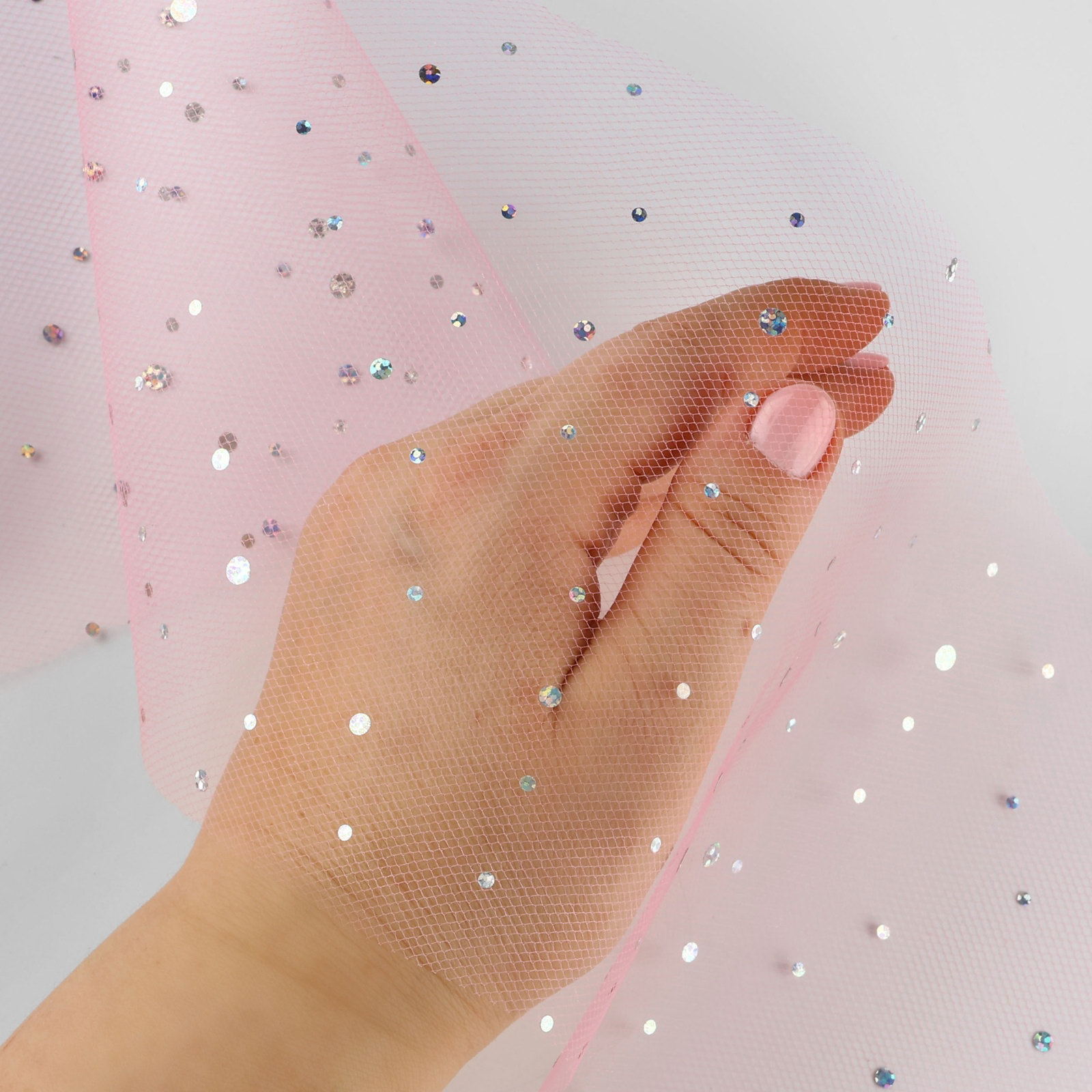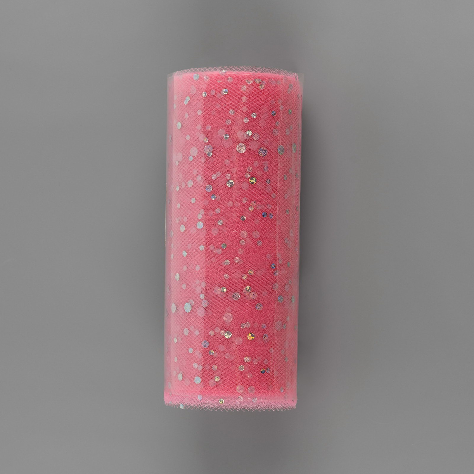Фатин с блёстками, 15 см, 23 +- 1 м, 11 +- 1 г/кв.м, цвет розовый №4, 6x15x6 см., Китай