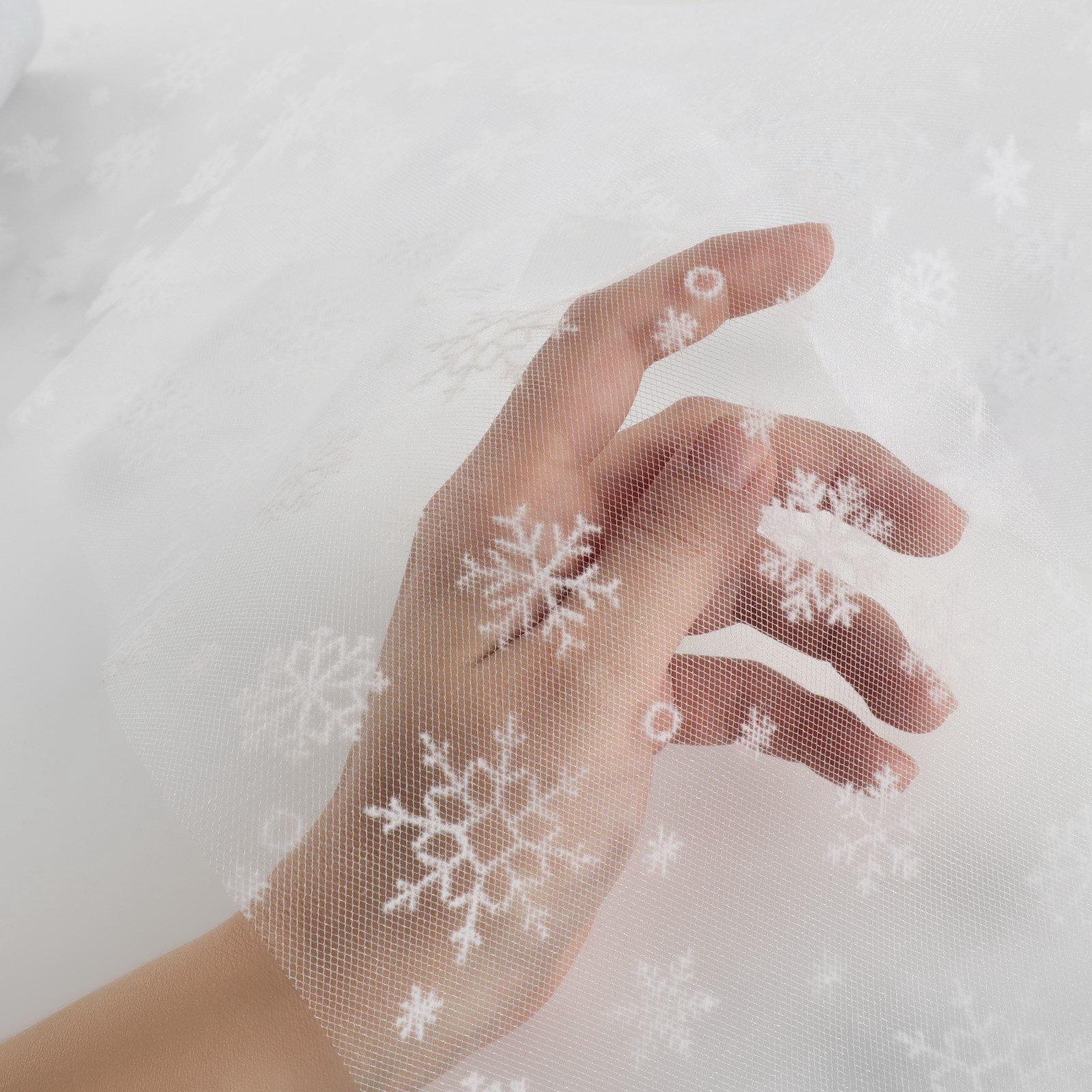 Фатин со снежинками, 15 см, 9.1+-0.5 м, 11+-1 г/?2, белый №1, 6x15x6 см., Китай