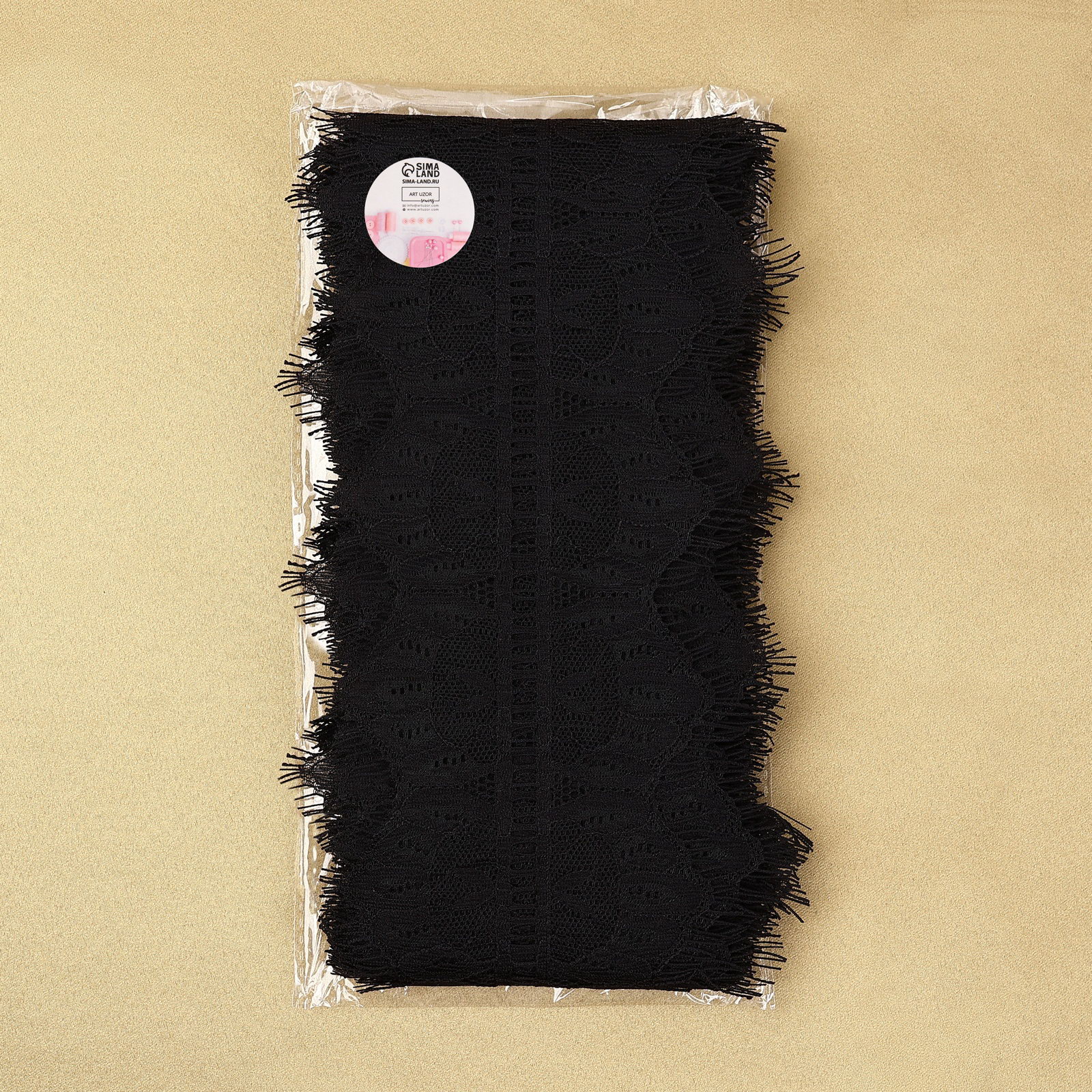 Кружево реснички, 85 мм, 9+-0.5 м, в бобине 3 шт. по 3 м, чёрное, 7x15x1 см., Арт Узор, Китай