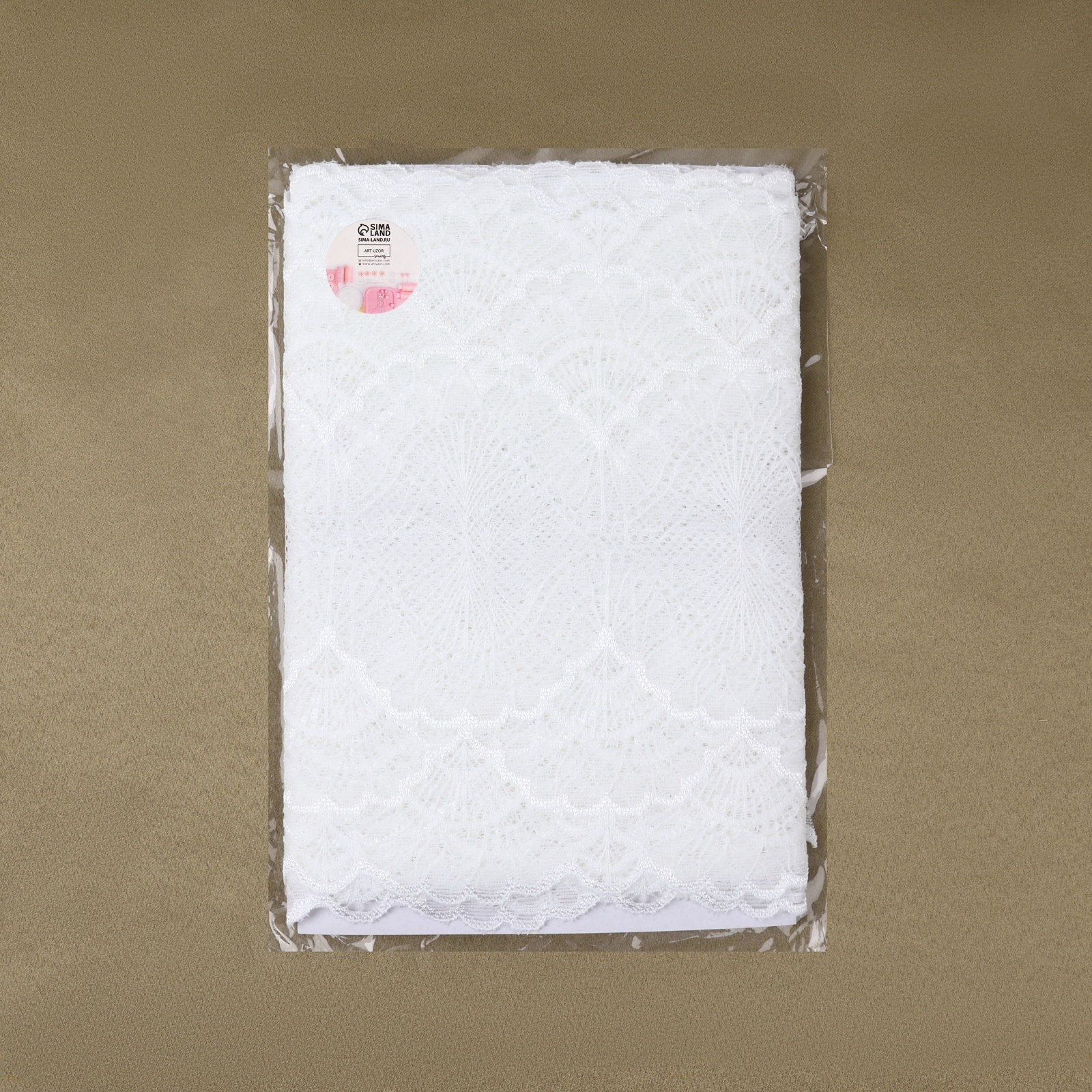 Кружевная эластичная ткань, 180 мм, 2.7+-0.5 м, белая, 18x19x2 см., Арт Узор, Китай