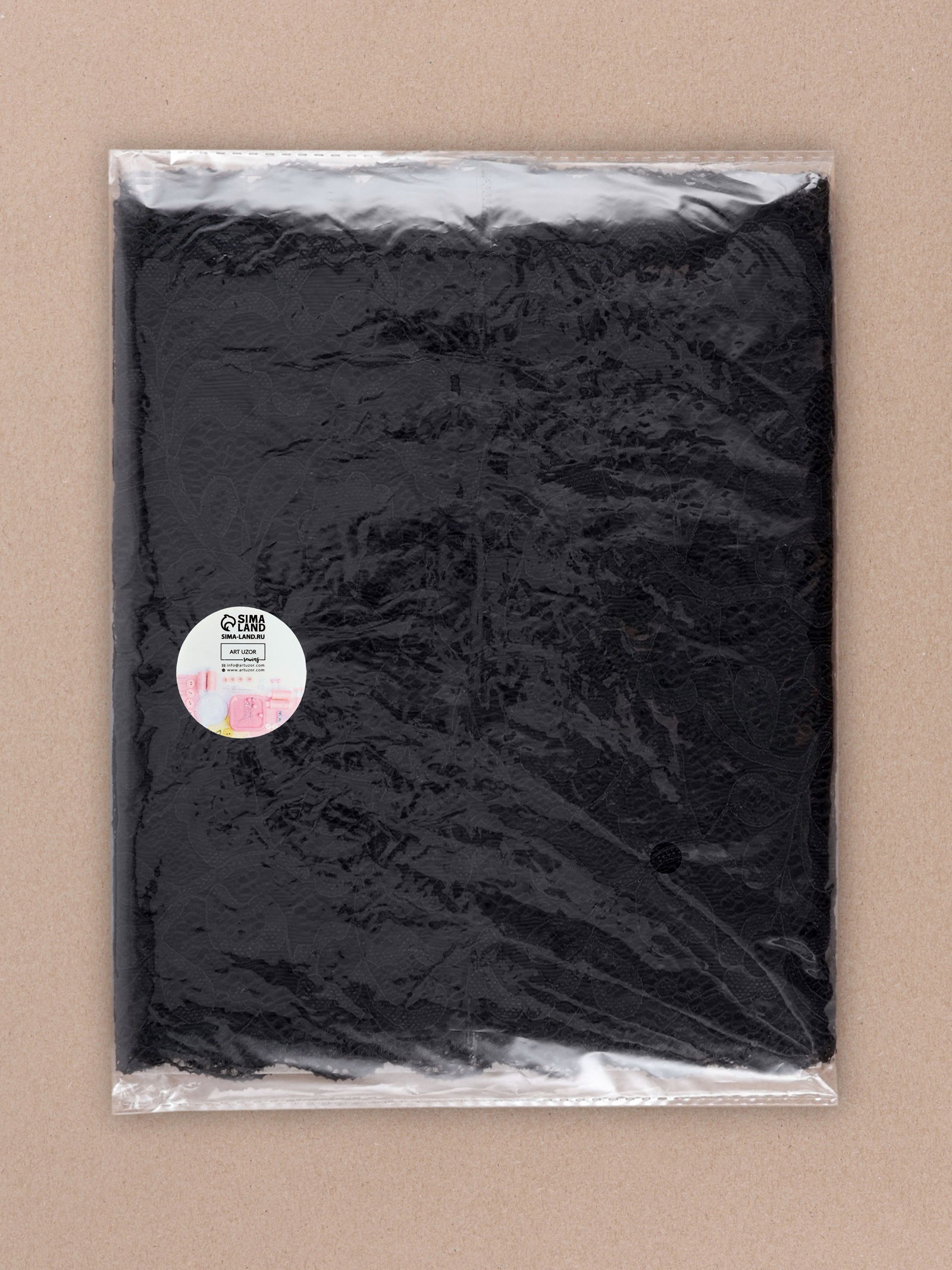 Кружевная эластичная ткань, 215 мм, 2.7+-0.5 м, чёрная, 19x21.5x2 см., Арт Узор, Китай