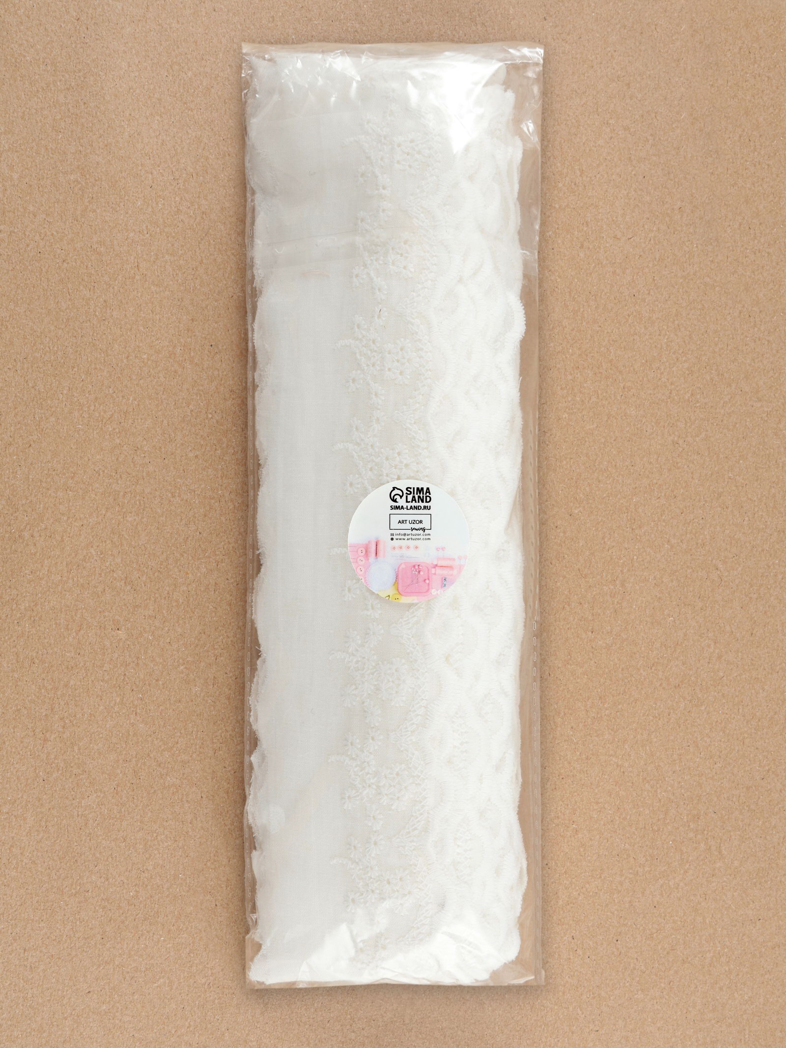 Кружево шитьё, 55 мм, 13+-1 м, белое, 8x20x3 см., Арт Узор, Китай