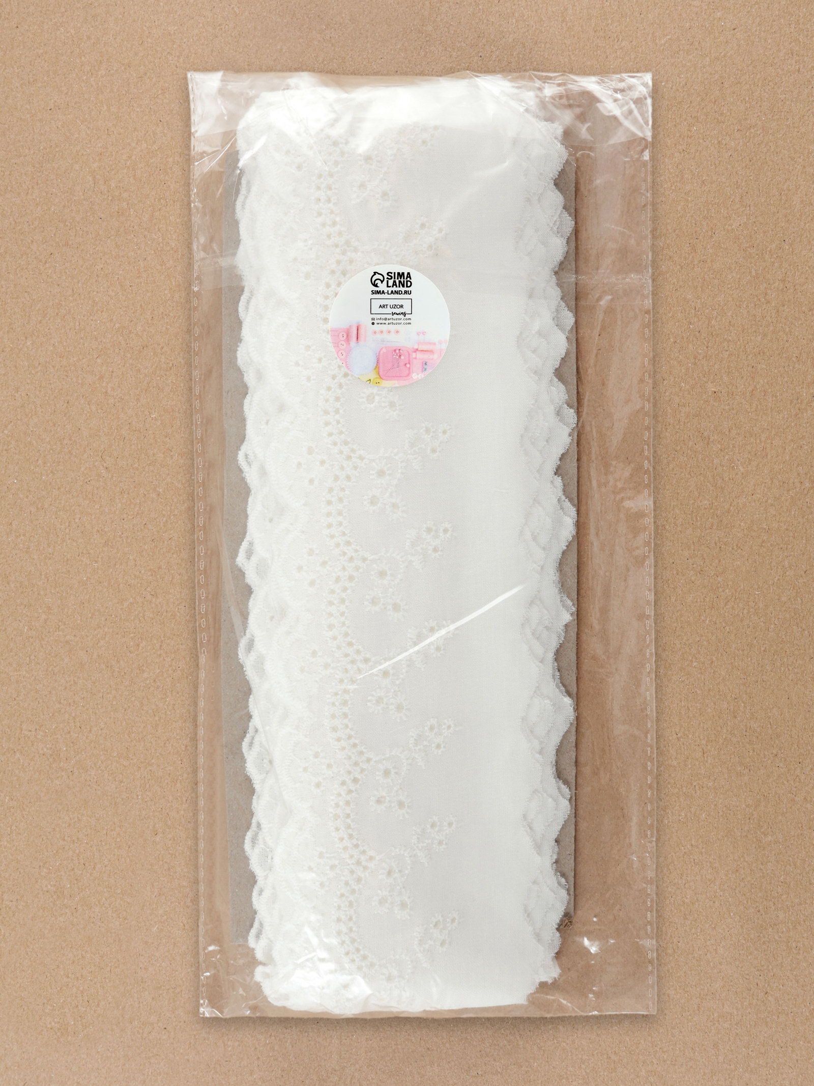 Кружево шитьё, 70 мм, 13.7+-1 м, белое, 8x20x3 см., Арт Узор, Китай