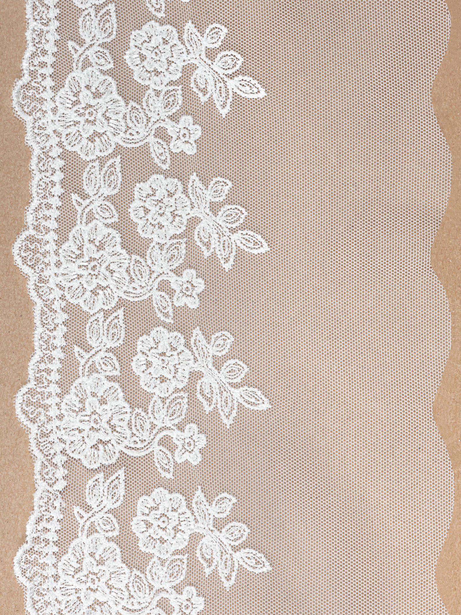 Практическое применение Это кружево отлично подойдет для отделки свадебных и вечерних платьев, юбок, блузок, а также для создания декоративных элементов в рукоделии. Благодаря прозрачной сетке и красивому узору оно добавит вашему изделию нежности и элегантности. | ||