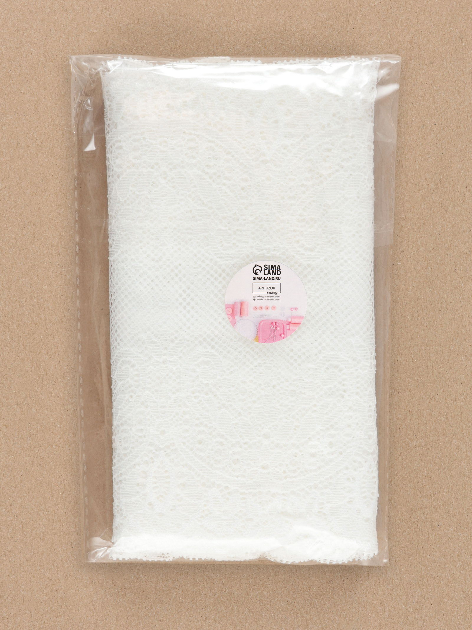 Кружевная эластичная ткань 180 мм, 2.7+-0.5 м, белая, 14x25x1.5 см., Арт Узор, Китай
