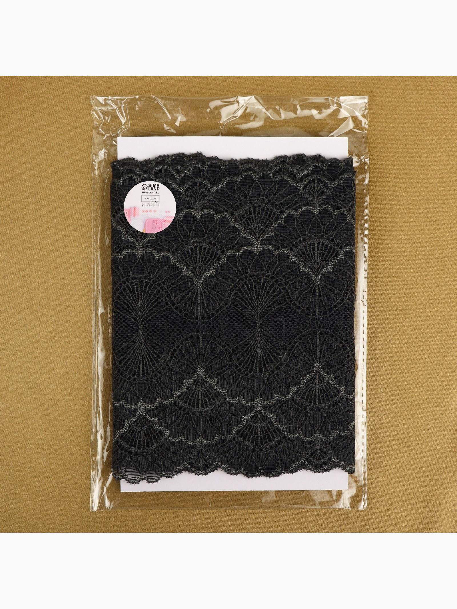 Кружевная эластичная ткань "Волны", 180 мм, 2.7+-0.5 м, графитовая, 14x25x1.5 см., Арт Узор, Китай