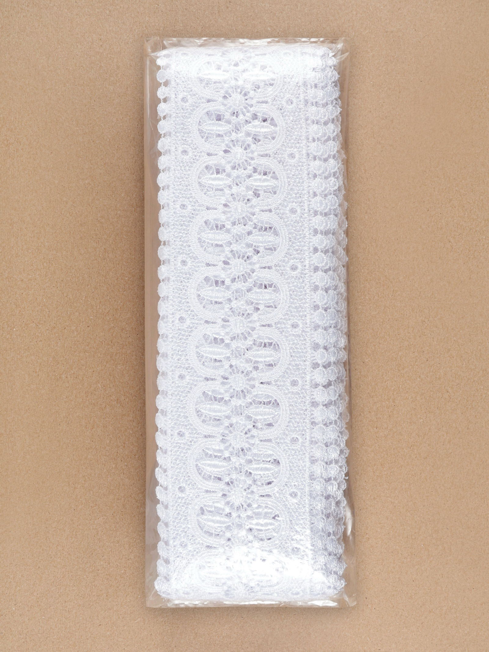Кружево гипюровое, 83 мм, 11+-1 м, белое, 6x16x6 см., Турция