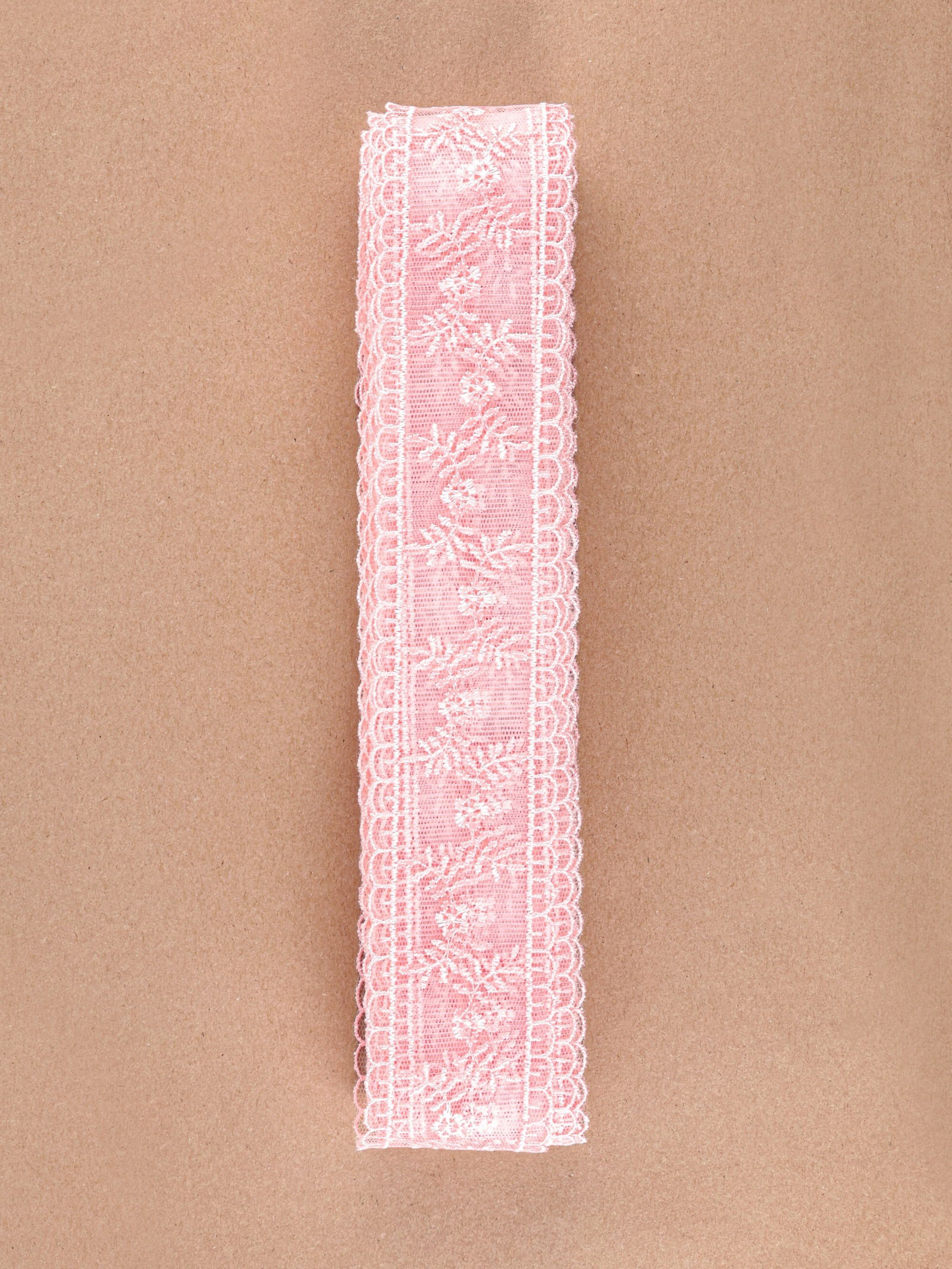 Кружево на сетке "Веточки", 50 мм, 11+-1 м, нежно-розовое, 6x16x6 см., Турция