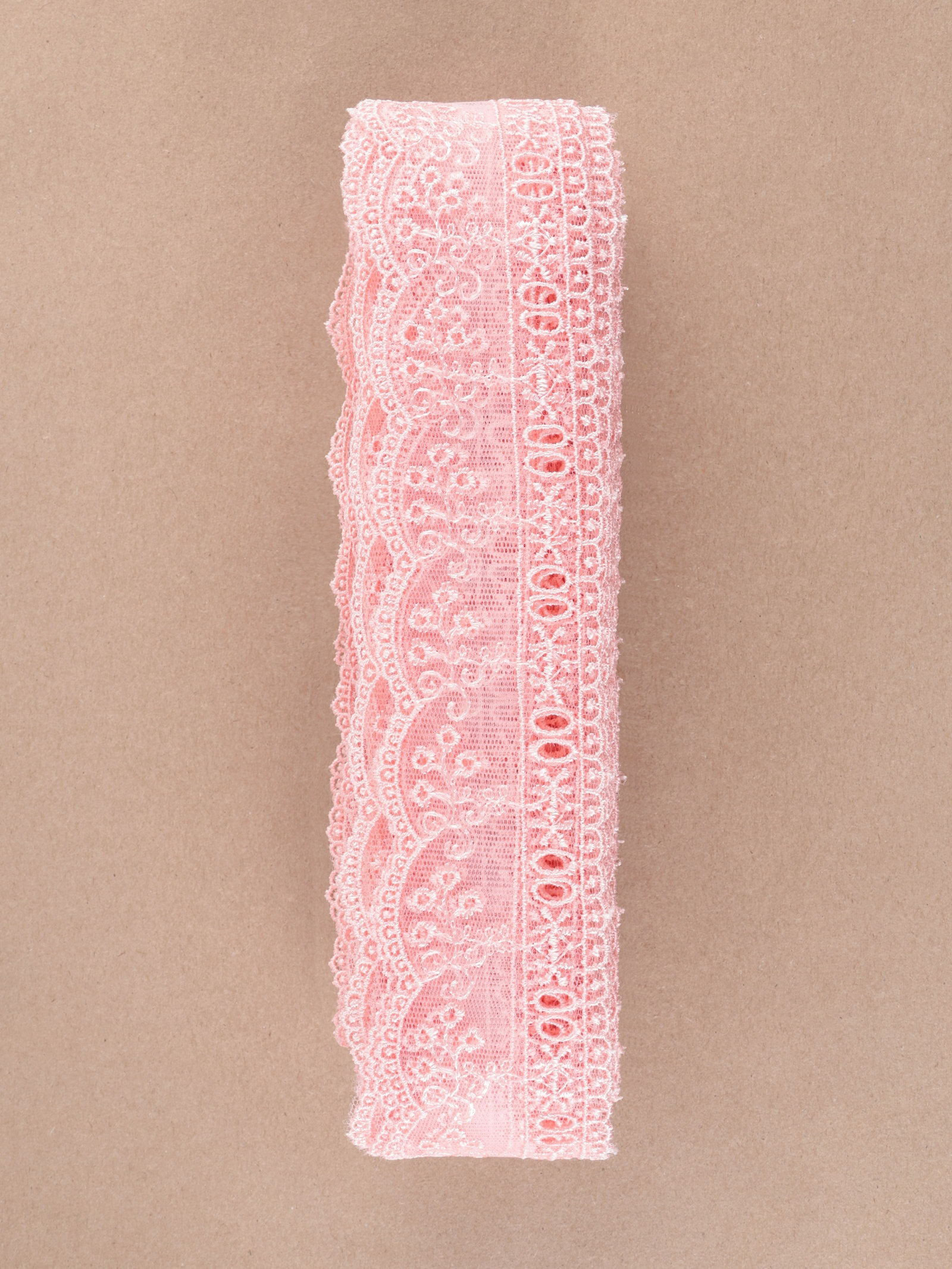 Кружево на сетке, 45 мм, 11+-1 м, нежно-розовое, 6x16x6 см., Турция