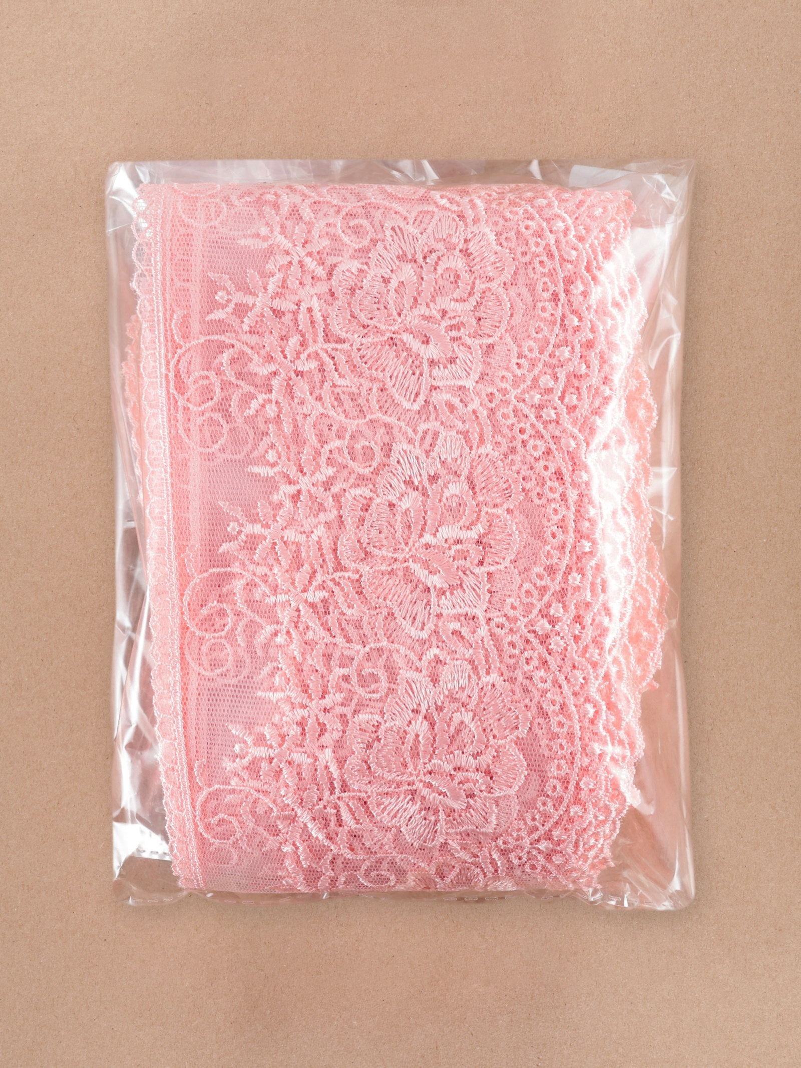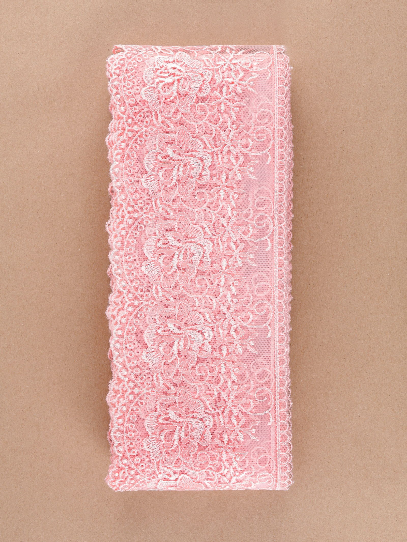 Кружево на сетке, 105 мм, 11+-1 м, нежно-розовое, 6x16x6 см., Турция