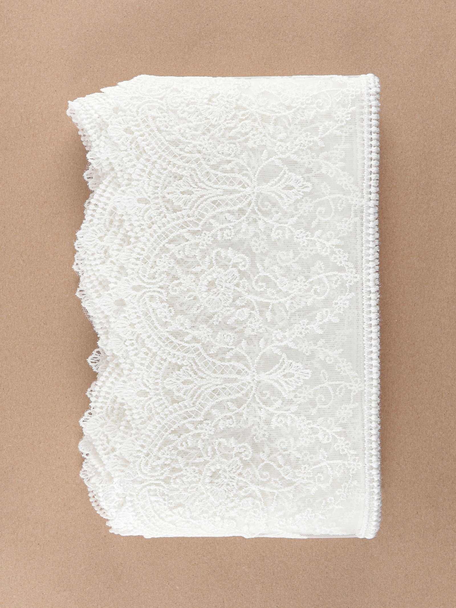 Такая отделка добавит элегантности и утонченности вашему проекту. Этот кружевной материал в 145 мм оживляет любое изделие, будь то изысканная свадебная вуаль или изящный элемент декора. Современный полиэстер с сеткой создаёт прочное и долговечное кружево, идеально подходящее для дизайнерских решений. Особенности
