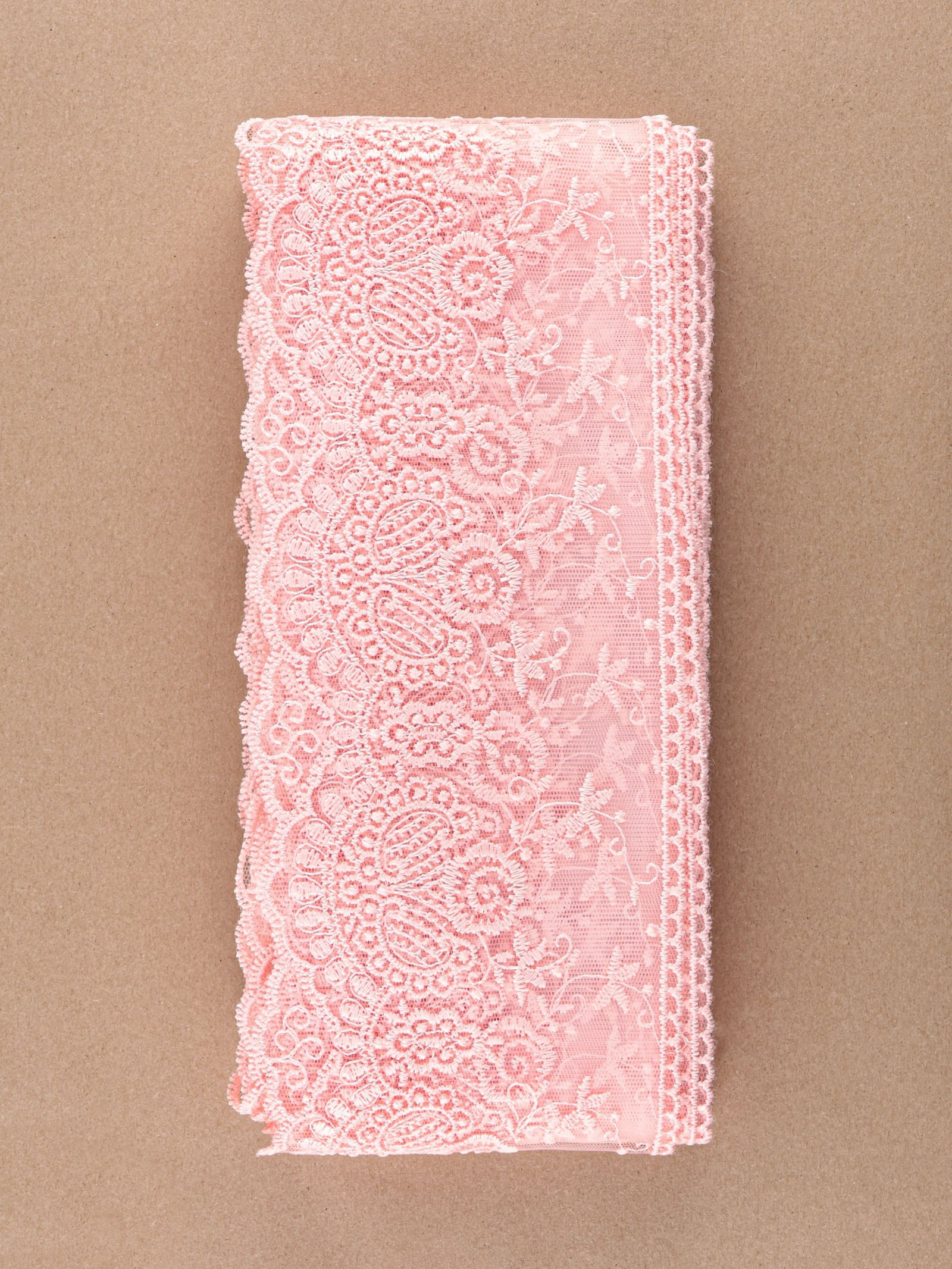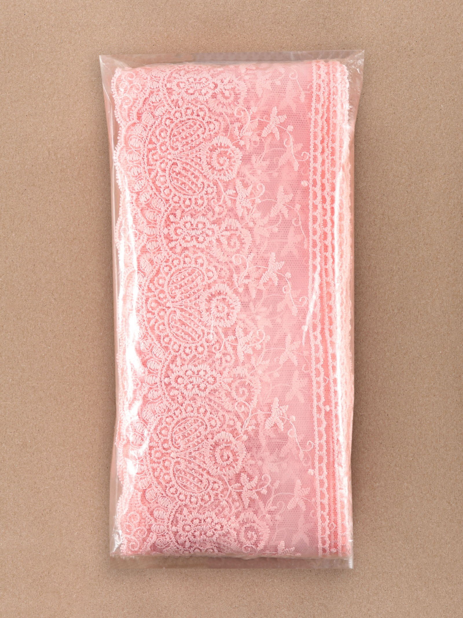 Кружево на сетке, 125 мм, 11+-1 м, нежно-розовое, 6x16x6 см., Турция
