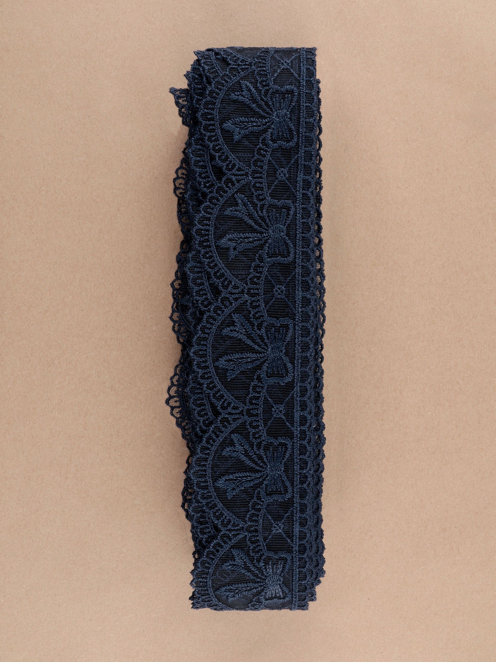 Кружево на сетке, 55 мм, 11+-1 м, тёмно-синее, 6x16x6 см., Турция