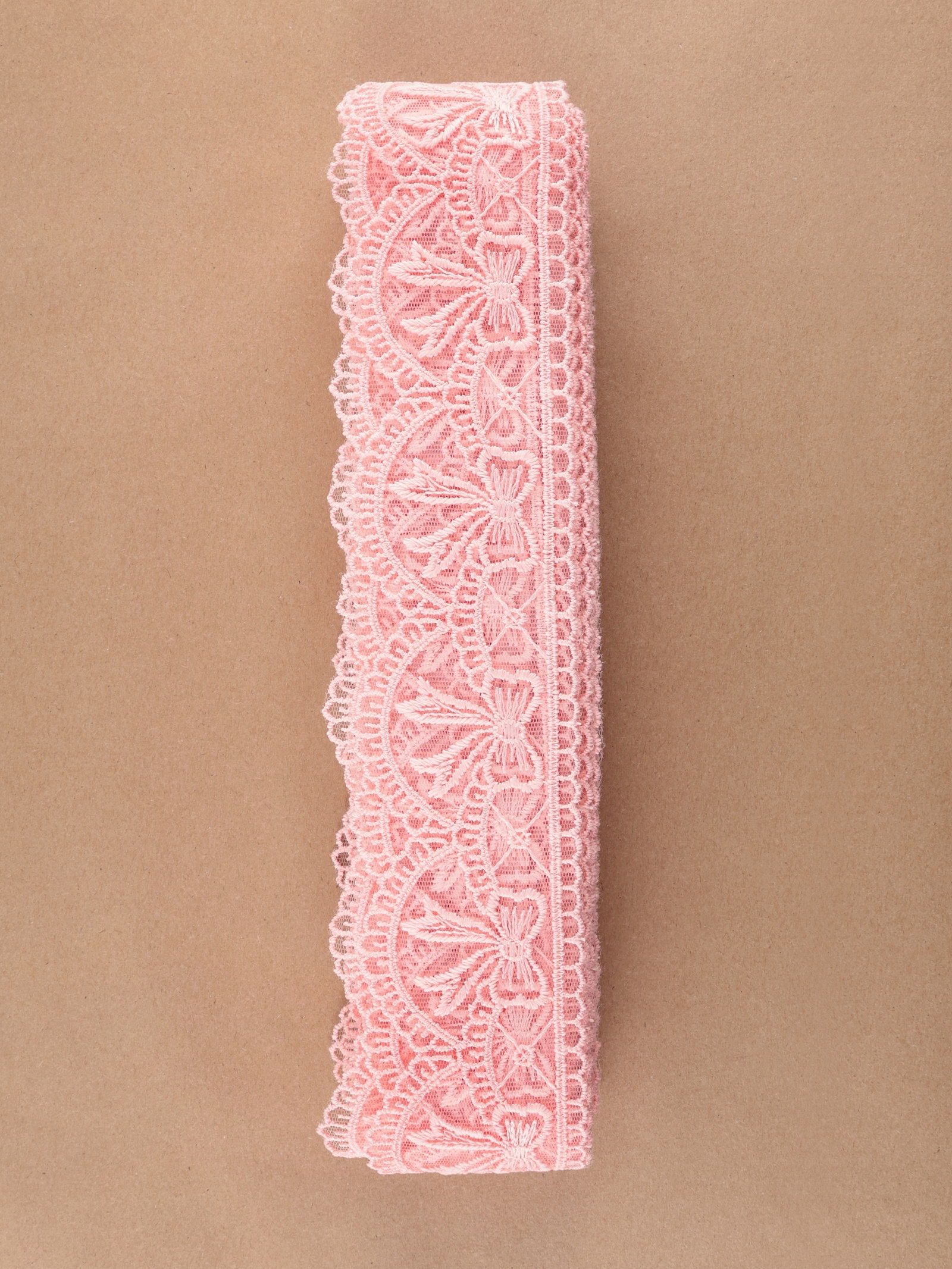 Кружево на сетке, 55 мм, 11+-1 м, нежно-розовое, 6x16x6 см., Турция