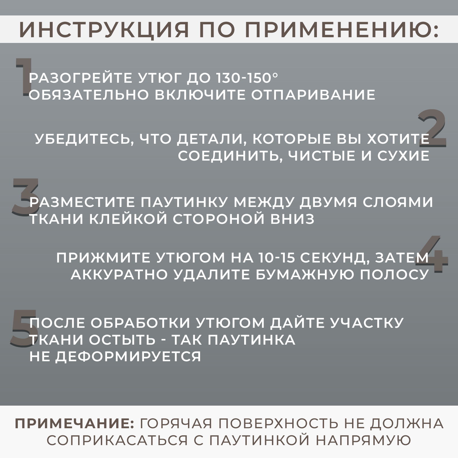 Размер упаковки: 17 x 1.5 x 18.5 см. Размер упаковки: 17 x 1.5 x 18.5 см. tnved: 5603119000 Цвет: Белый Вид: Клеевой Ширина, мм: 15 Длина, м: 73 Паутинка подходит для мелкого ремонта одежды и подгиба низа изделий. Чтобы приклеить её, необходимо расположить изделие между двух тканей и проутюжить с изнаночной стороны. Главное, чтобы горячая поверхность не соприкасалась с паутинкой напрямую, иначе она оставит на одежде след. | ||