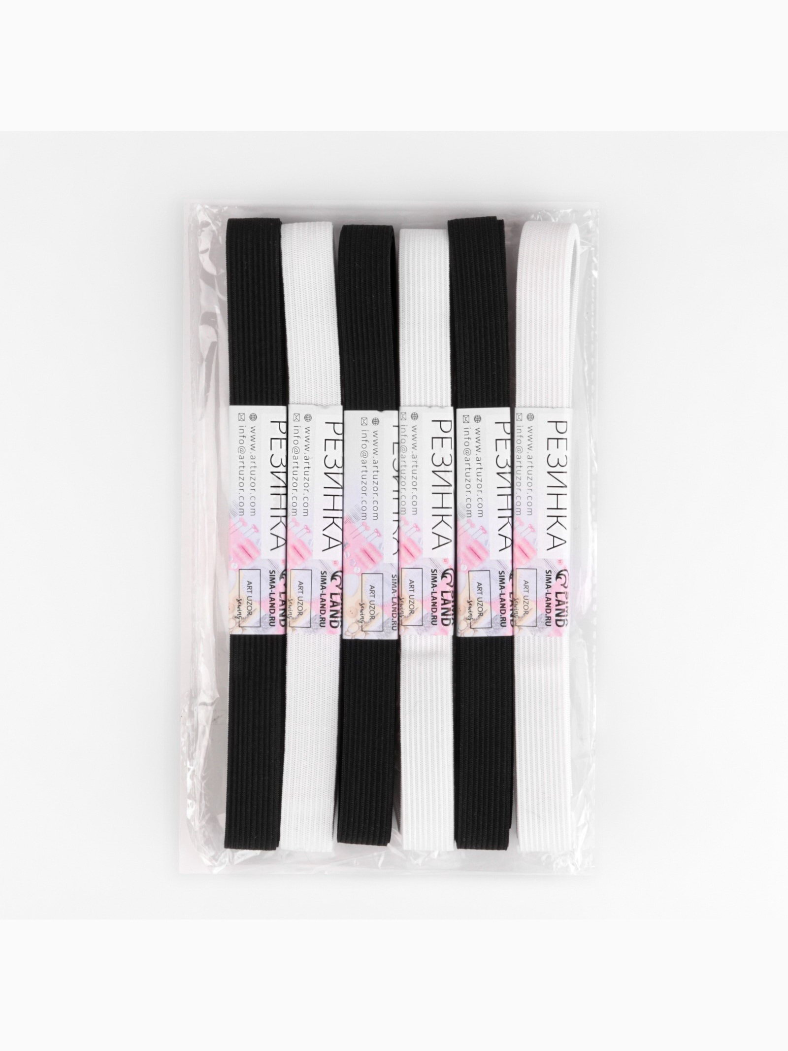 Резинки бельевые, 15 мм, 2+-0.5 м, набор 6 шт., белые, чёрные, 10x15x2 см., Арт Узор, Китай