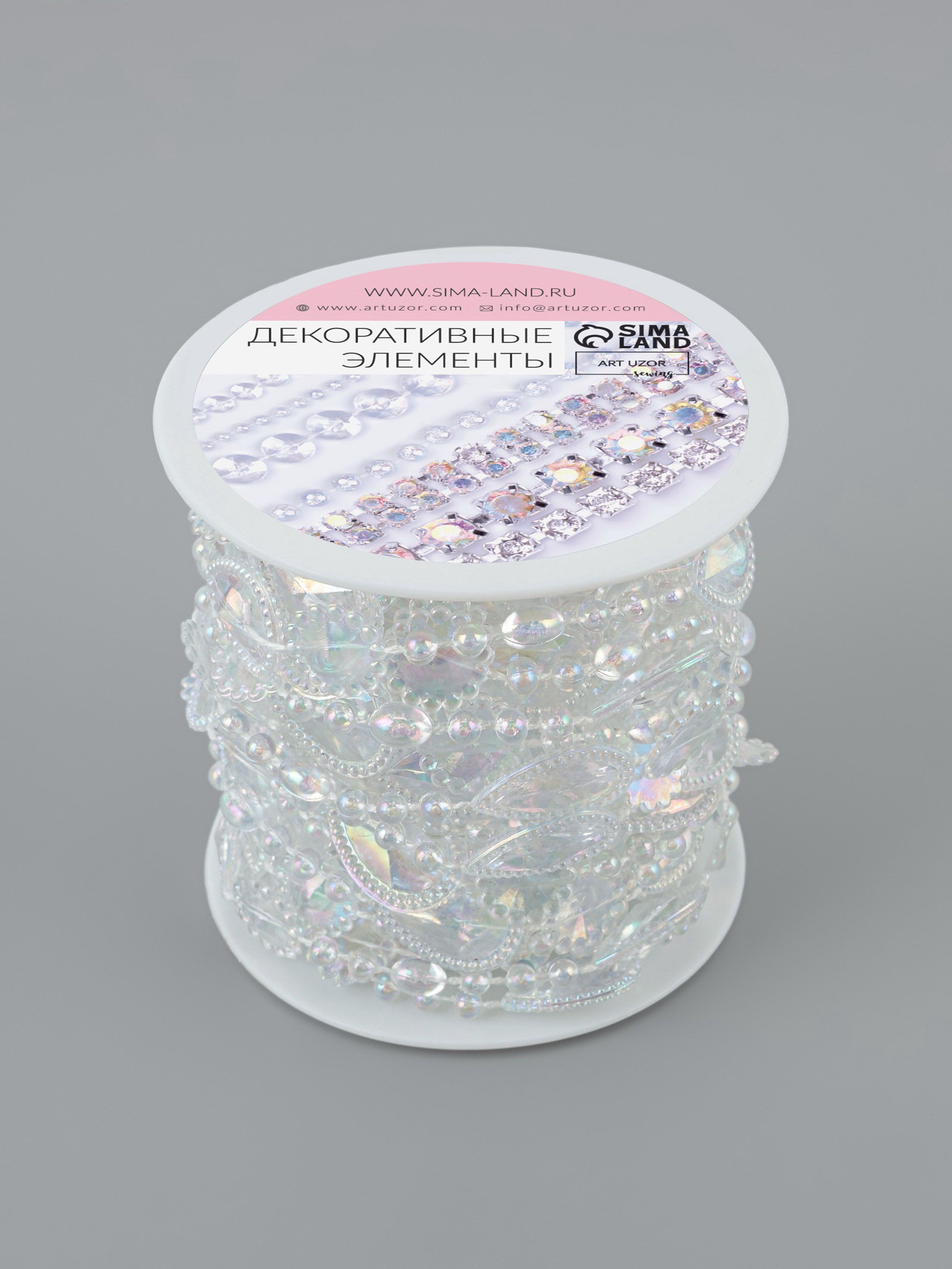 Бусы на нитях, с голографией, 15 мм, 9+-1 м, прозрачные, 6x12x6 см., Арт Узор, Китай