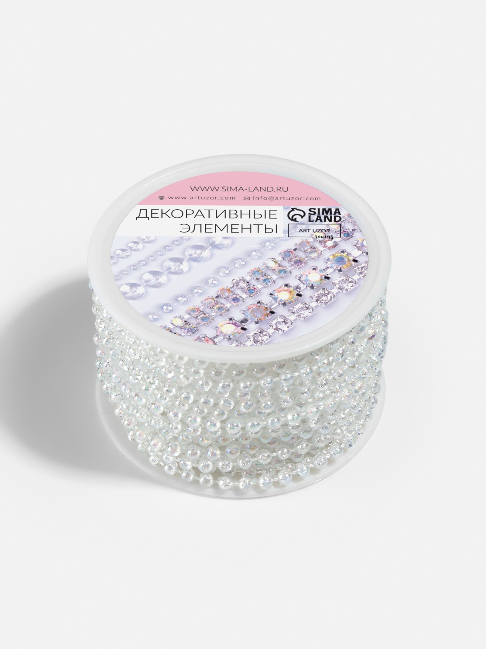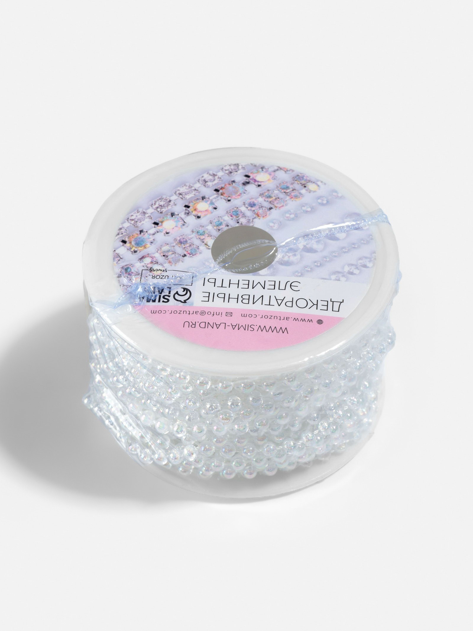 Бусы на нитях, с голографией, 3 мм, 9+-1 м, белые, 6x12x6 см., Арт Узор, Китай