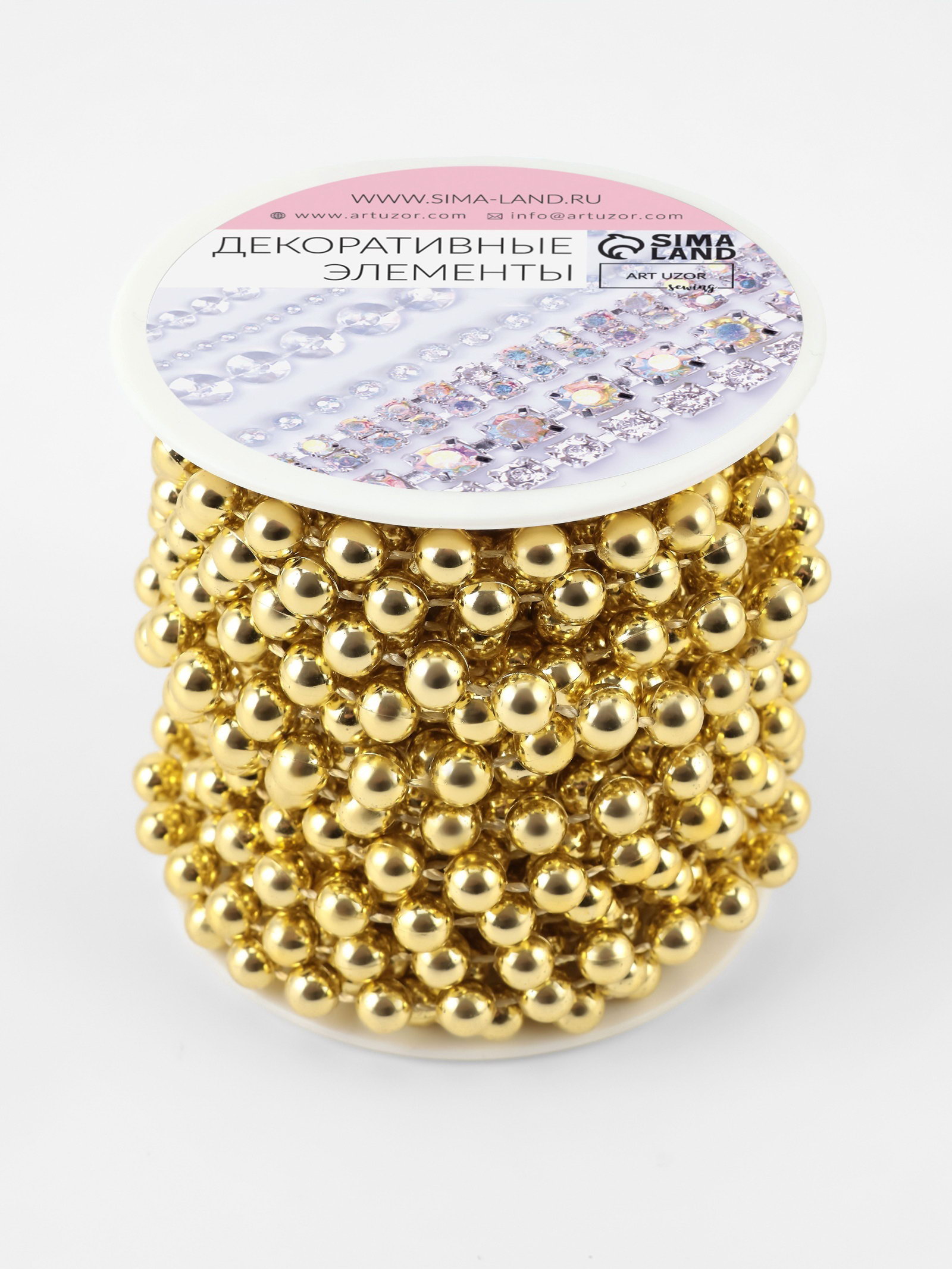 Бусы на нитях, 7.5 мм, 9+-1 м, цвет золотой, 6x12x6 см., Арт Узор, Китай