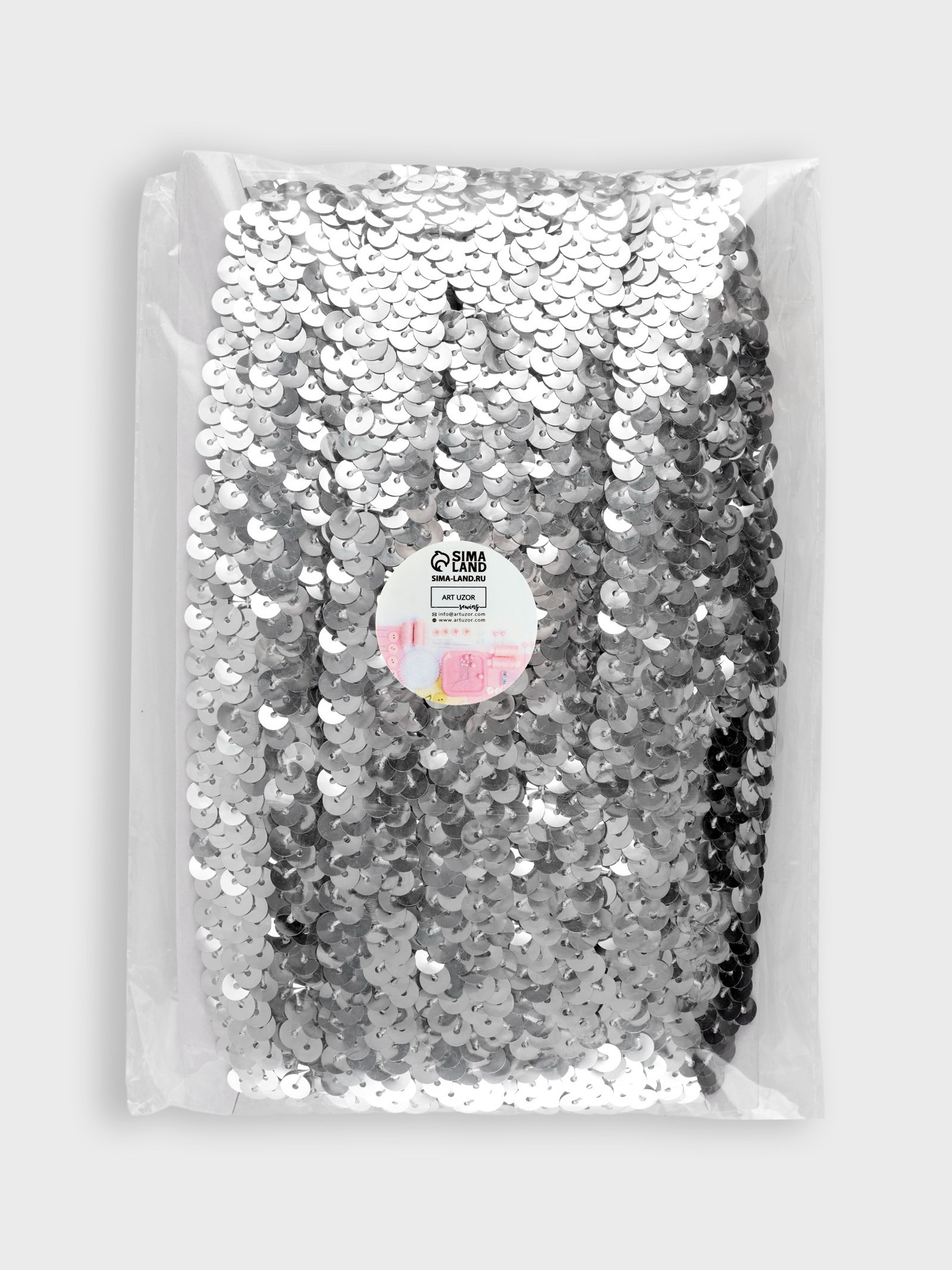 Тесьма декоративная с пайетками, на резинке, 2 см, 9 +- 0.5 м, цвет серебряный, 6x20x5 см., Арт Узор, Китай