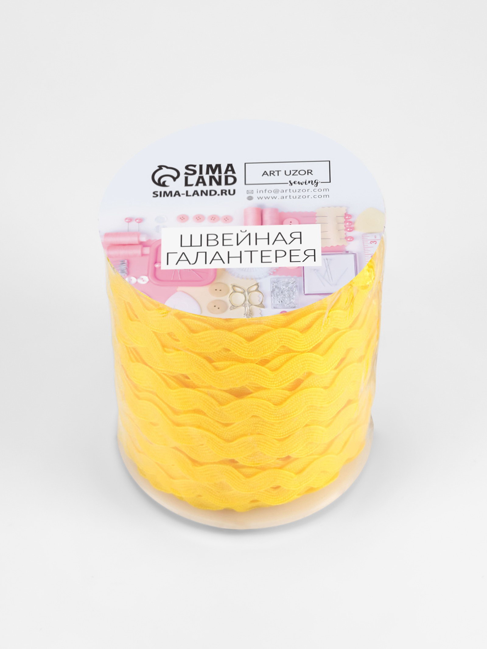 Тесьма отделочная "Вьюнчик", 5 мм, 27+-1 м, жёлтая №15, 7x7x6 см., Арт Узор, Китай