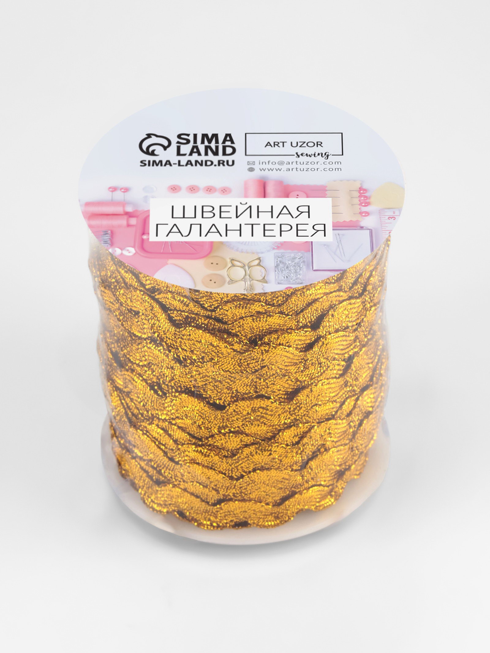 Тесьма отделочная "Вьюнчик", 5 мм, 27 +- 1 м, цвет золотой, 7x7x6 см., Арт Узор, Китай